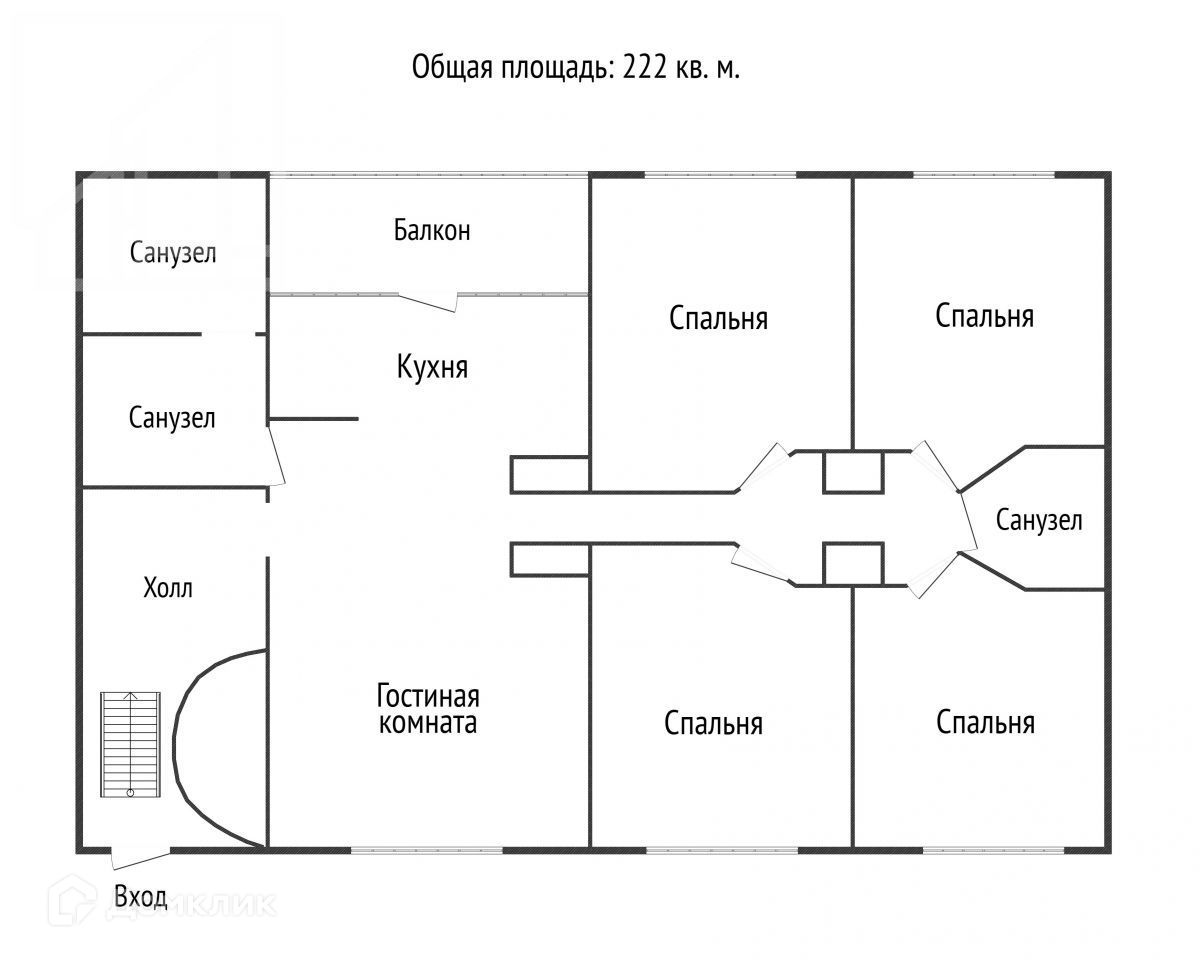 Общая площадь 222 м2