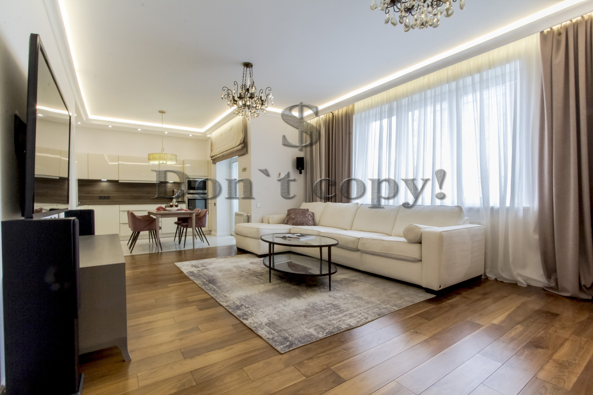 В квартире выполнен качественный дизайнерский ремонт (под себя). Ранее квартира не сдавалась. Общая площадь квартиры составляет: 103 м2, жилая площадь: 64 м2, площадь кухни: 12 м2. Окна – стеклопакеты «Rehau» (тихий двор-улица). На полу дубовый паркет, плитка с подогревом. 2 сан. узла совмещённых в плитке – евро стандарт с сан техникой: Villeroy&Boch, Hansgrohe, Axor, постирочная зона со стиральной и сушильной машинами «Bosh Professional». Застеклённая, утеплённая лоджия 3,3 м2. 2 вместительные гардеробные комнаты. В каждой комнате установлены кондиционеры «Toshiba». Вся мебель, включая кухонный гарнитур производства Германия «Nolte» под единой столешницей с бытовой встроенной техникой (посудомоечная машина «Bosh», холодильник «Liebherr», духовой шкаф «Neff», варочная панель «Neff», микроволновая печь «Neff», морозильная камера «Liebherr»), кофемашина «De'Longhi» производства Италия, в идеальном состоянии, для комфортного проживания. В гостиной установлена акустическая система 5.1. «звук вокруг», в детской комнате установлена камера наблюдения, датчики движения, квартира находится под ведомственной охраной.