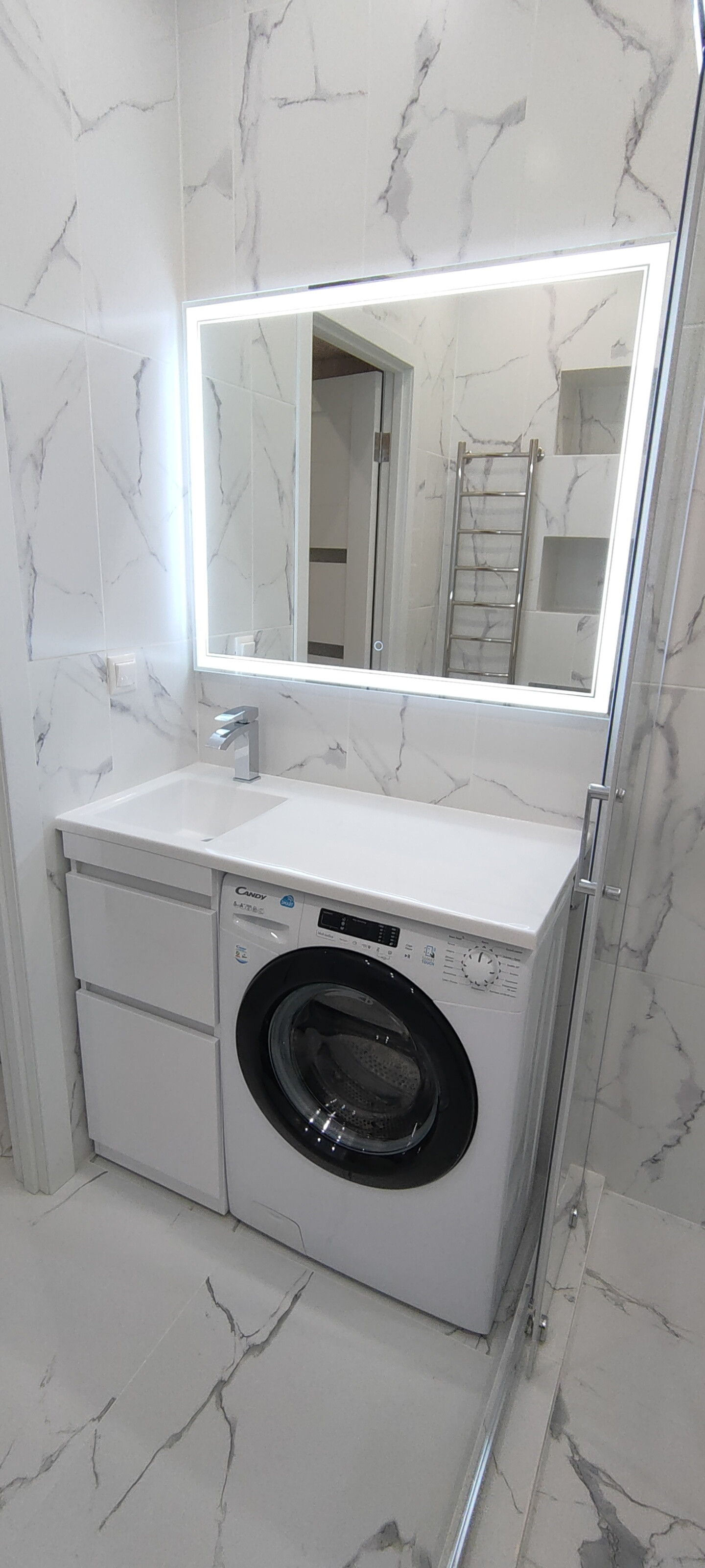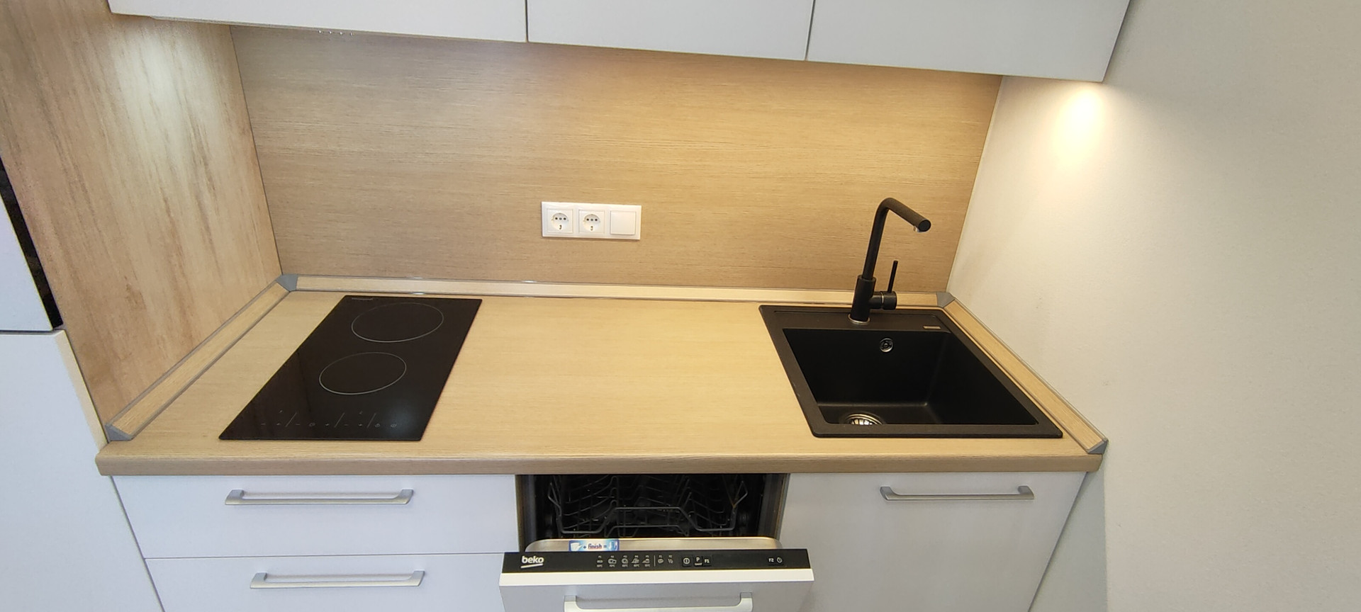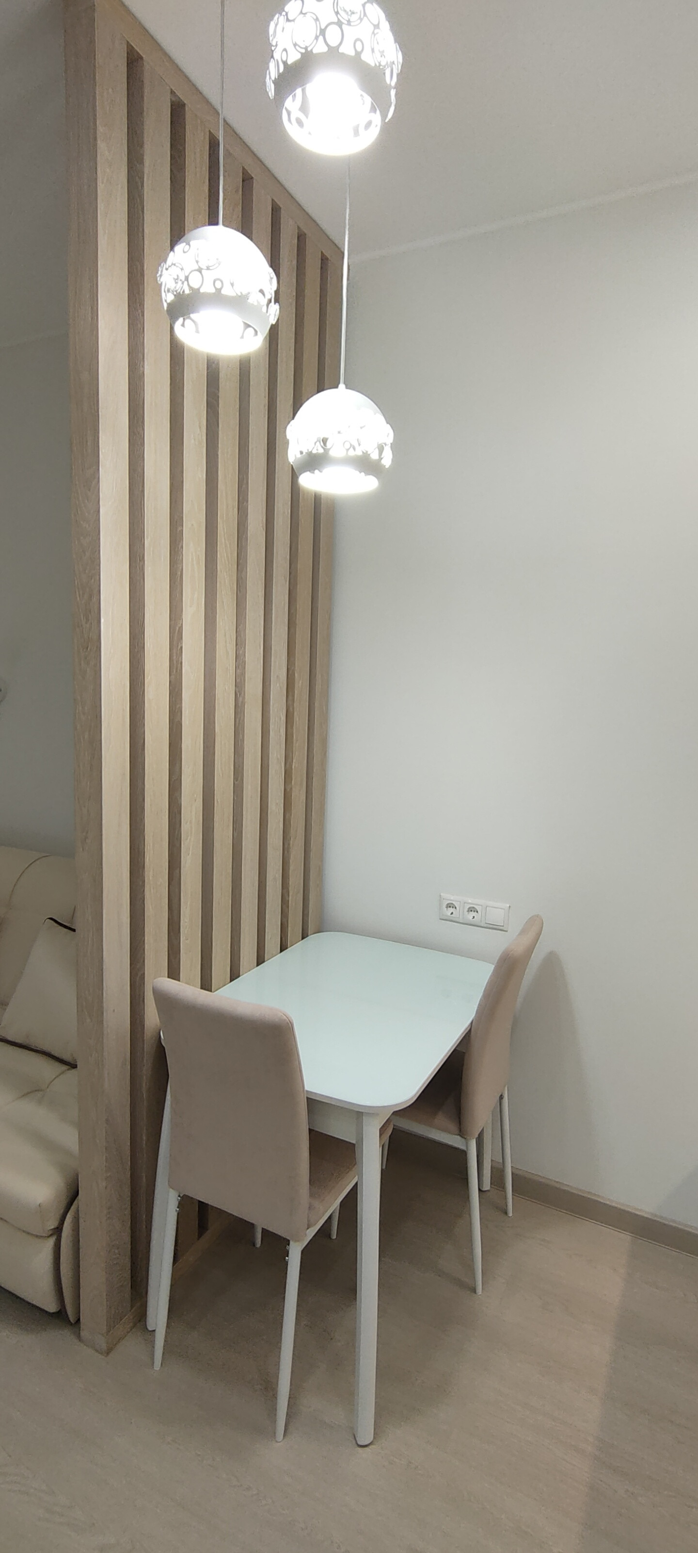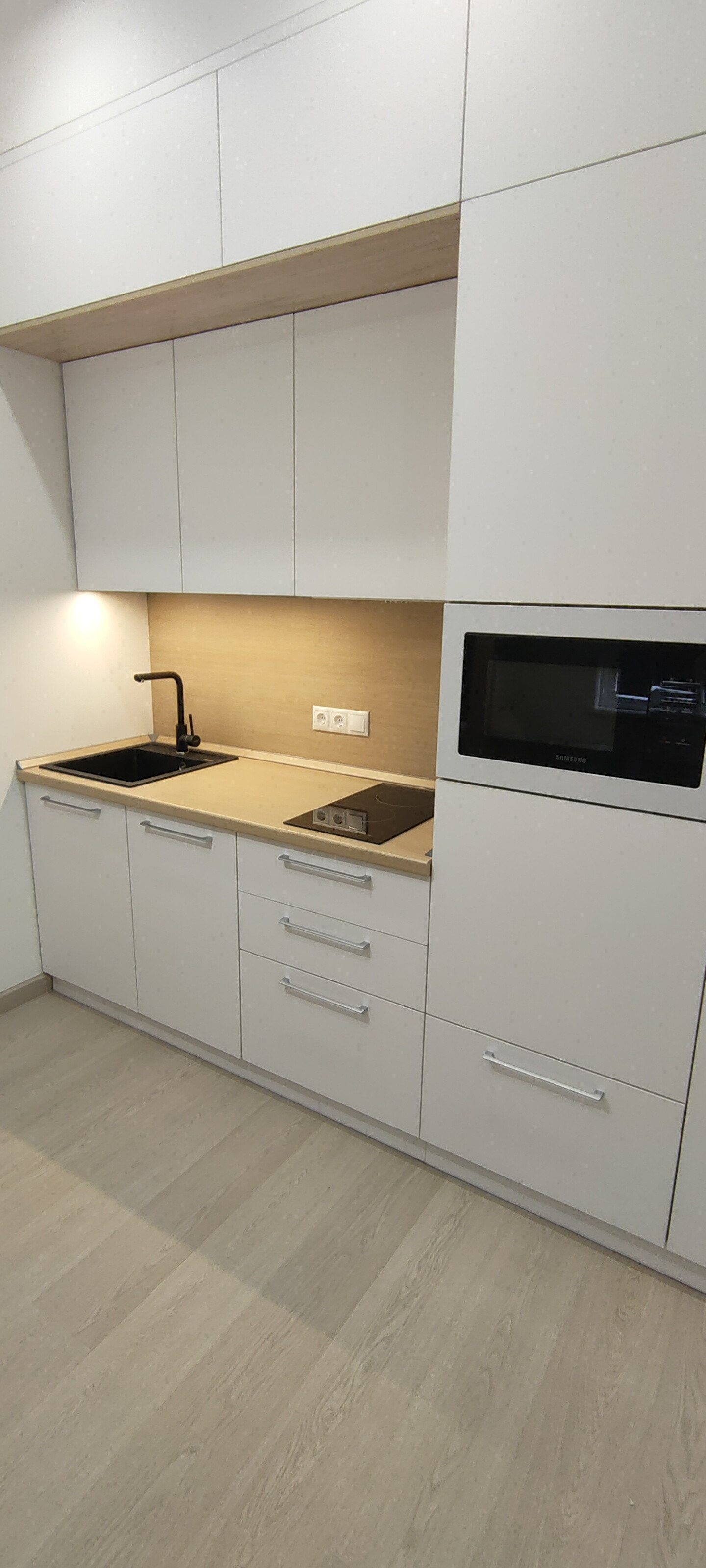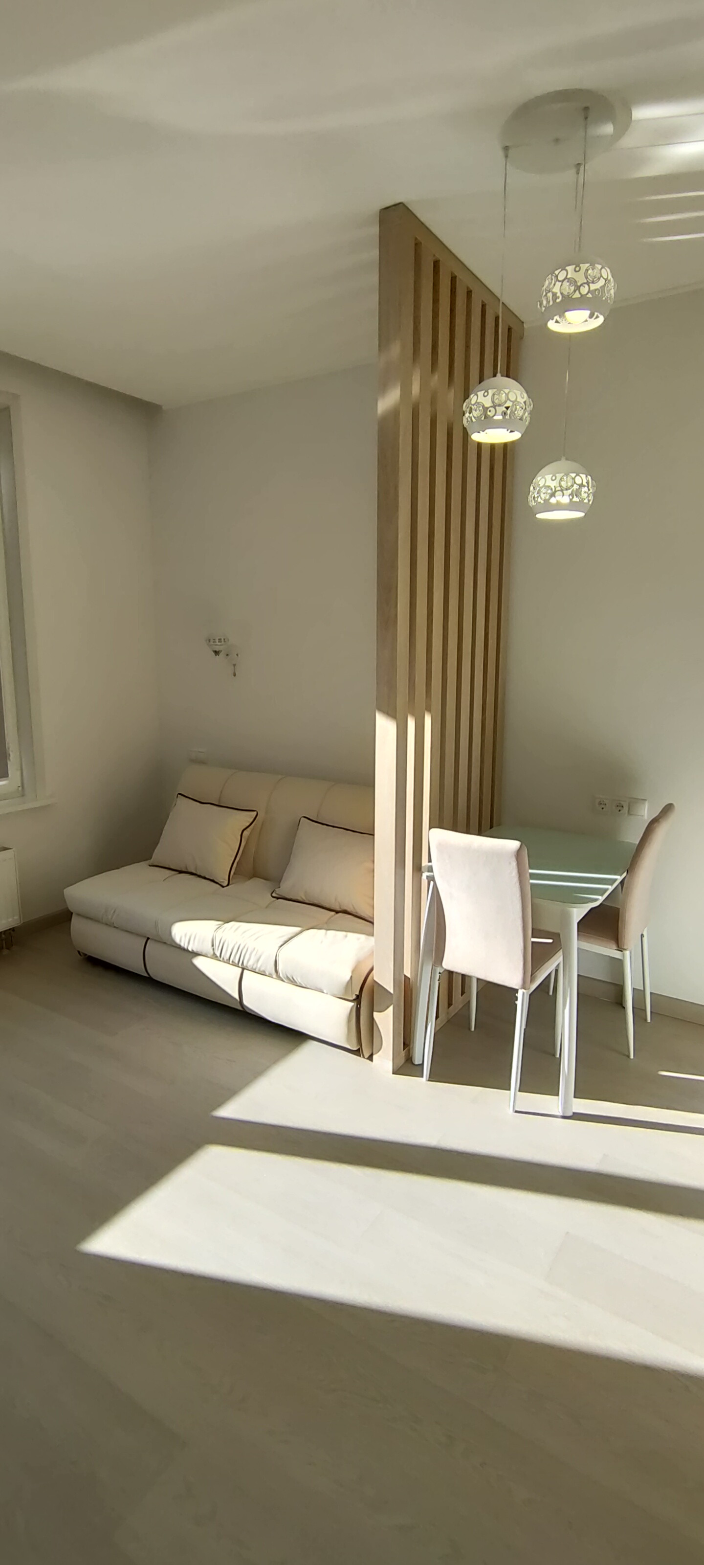 В апартаменте выполнена современная стильная отделка, вся мебель и техника новая. Имеется всё необходимое для комфортной жизни: встроенная мебель: шкафы для одежды со штангой, полками и ящиками, раскладной диван, жалюзи и шторы, телевизор 43 дюйма, оборудовано рабочее место с личной подсветкой. В кухонной зоне есть холодильник, стол и стулья, встроенный гарнитур с варочной панелью, посудомоечной машиной, микроволновой печью и вытяжкой. В санузле пол с подогревом, большая душевая кабина, зеркало с подсветкой, стиральная машинка. Также в помещении установлен кондиционер, видеодомофон, заведен скоростной интернет.