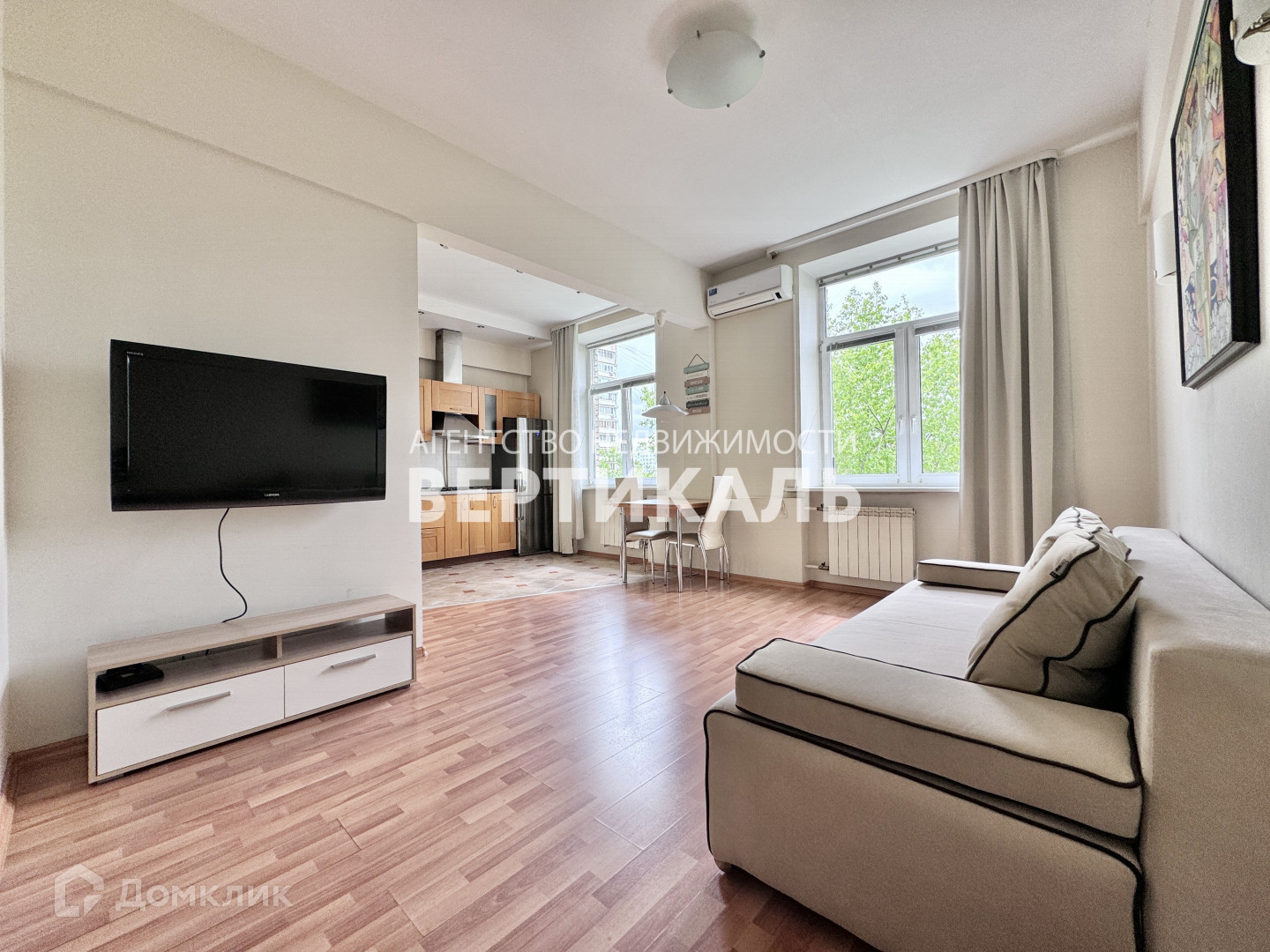 Вашему вниманию предлагается в сталинский доме, общей площадью 72 м2, кухня гостиная, спальня изолированная, в спальне большой шкаф купе. Хороший ремонт, на полу ламинат, плитка, стены накат, окна стекло-пакеты, балкон застекленный.Санузел раздельный (ванна), кухня встроенная-вся бытовая техника, СМА, ПММ, два кондиционера. Мебель современная. Чистый подъезд. Во дворе большой паркинг.