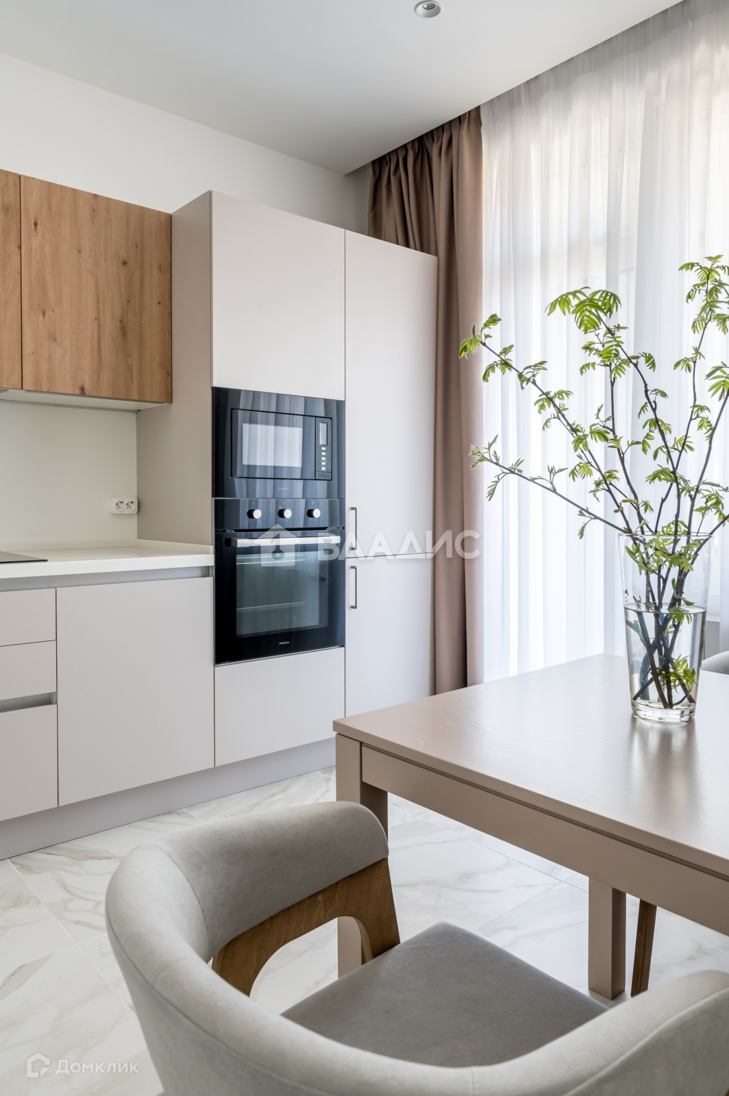 Квартира оснащена всей необходимой бытовой техникой: встроенный холодильник, духовой шкаф, посудомоечная машина, микроволновая печь, варочная панель, вытяжка, кондиционер, телевизор и стирально-сушильная машина HAIER (вам не придется развешивать белье по квартире!), пылесос. Теплые полы на кухне и в ванной комнате, видеодомофон, система "умный дом". В квартире продуманно множество систем хранения, в том числе большая и вместительная оборудованная гардеробная. На балконе с остеклением в пол организован уютный уголок для отдыха, а в спальне - функциональное рабочее место.