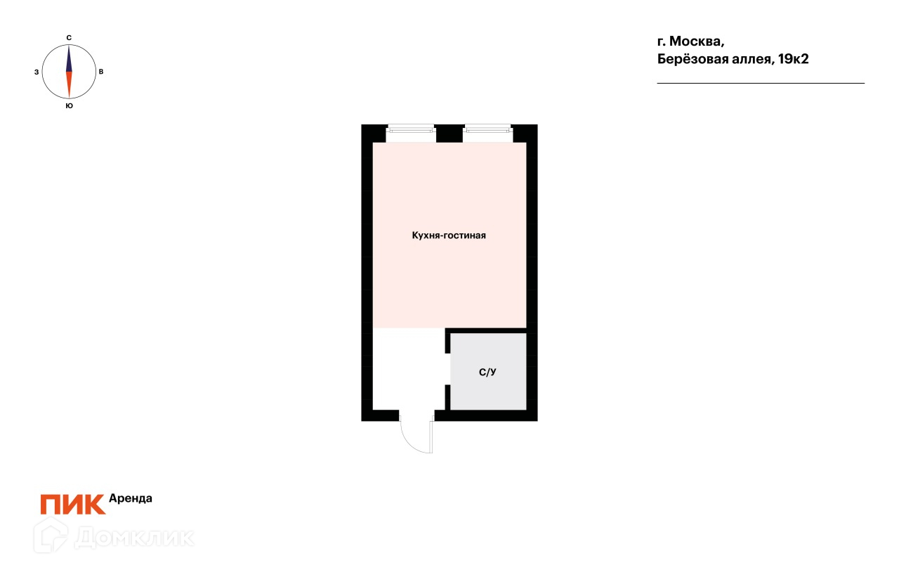 1-комнатная квартира, 25.3 м2, в аренду на длительный срок в Москве, Берёзовая аллея, 19к2