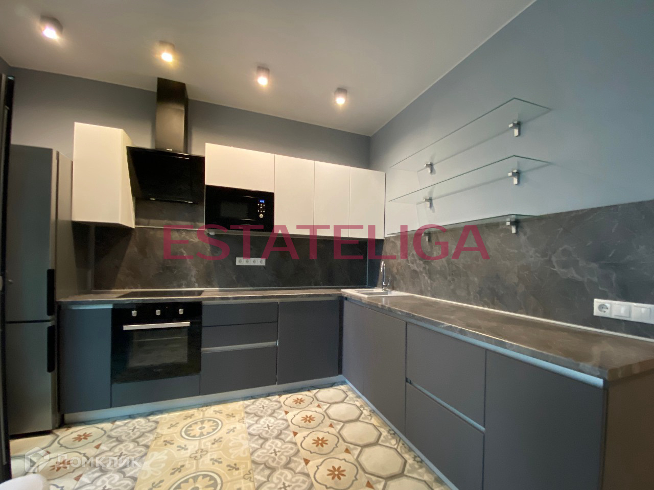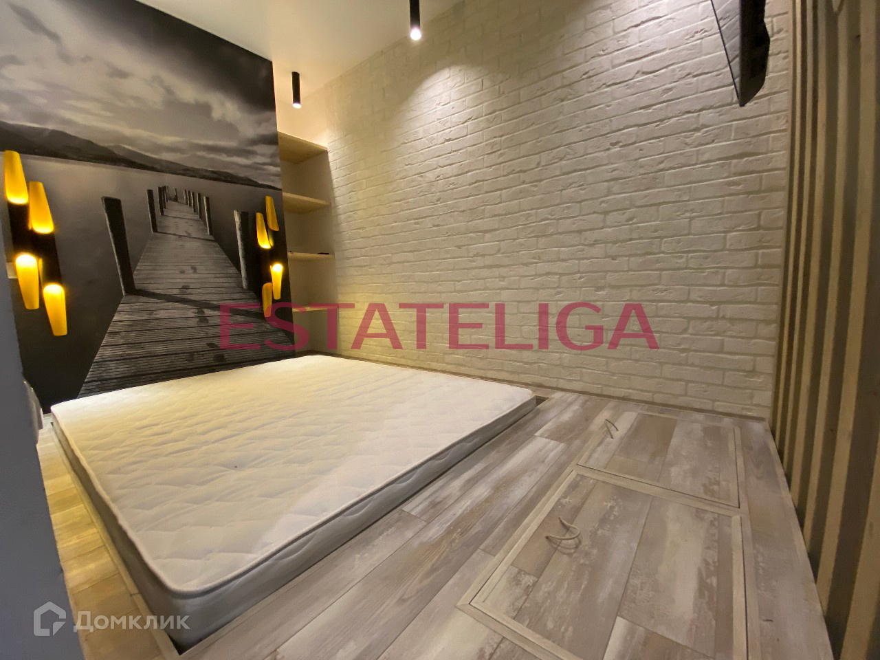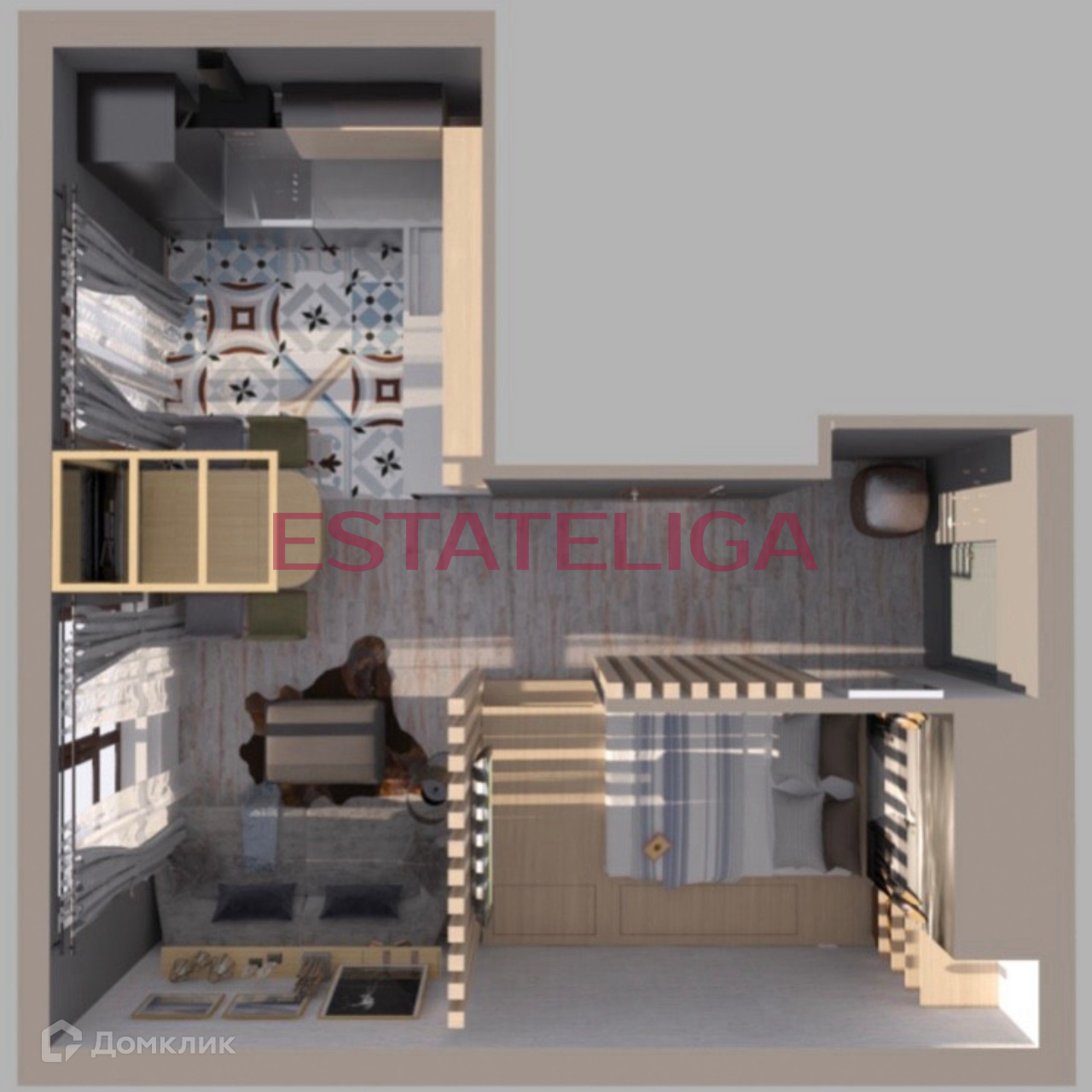 Функциональная планировка апартамента студийного типа, разработанная по индивидуальному дизайн-проекту: просторная кухня с обеденной зоной и кухонным гарнитуром и бытовой техникой (холодильник, духовой шкаф, микроволновка, посудомоечная машина), зона гостиной с диваном, огороженная спальная зона с телевизором и ящиками для хранения, полностью укомплектованный совмещенный санузел, отдельная гардеробная комната, просторный балкон с панорамным остеклением. Установлен кондиционер, теплые полы.