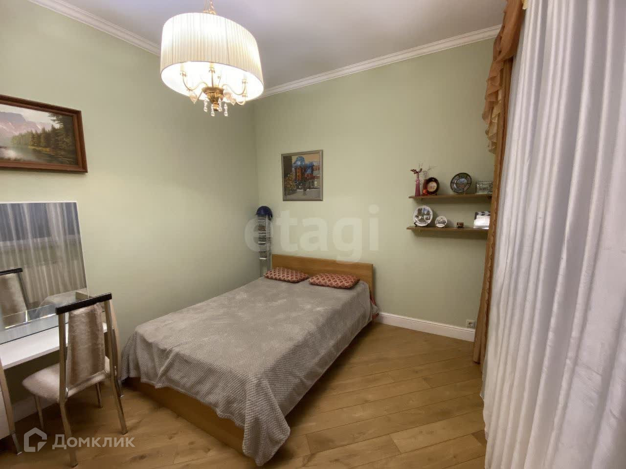 В квартире есть 3 спальни, одна из которых разделена плотной перегородкой на две отдельные комнаты. Из одной спальни можно попасть на застеклённый балкон.