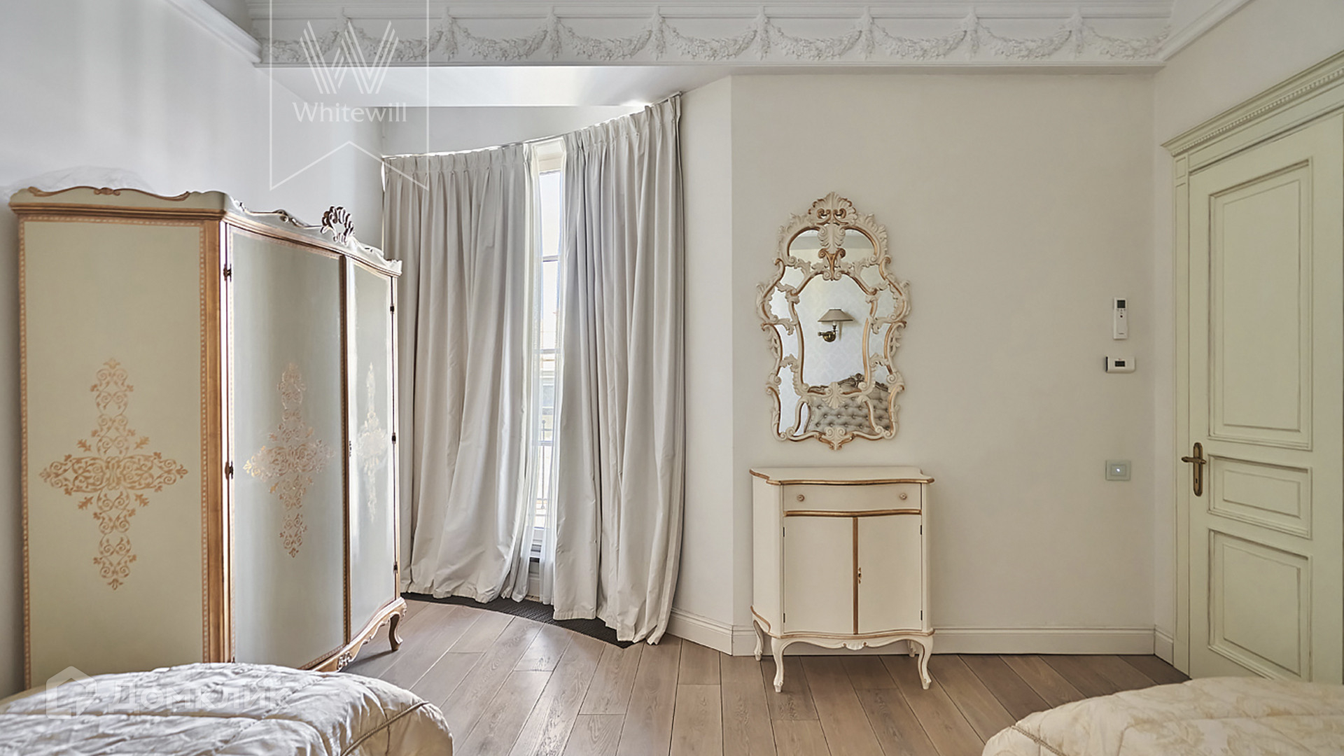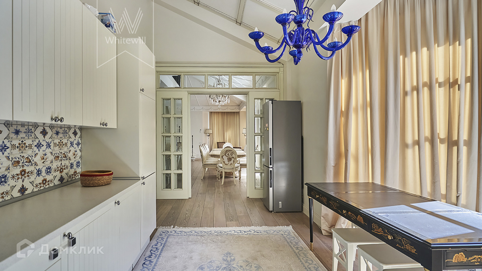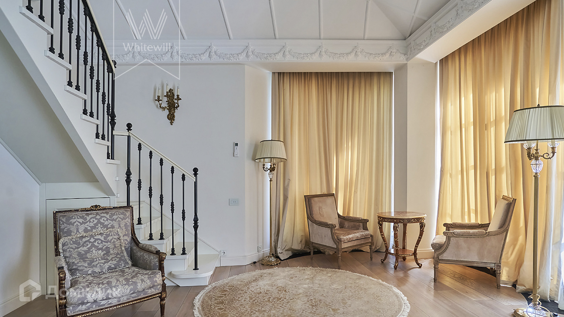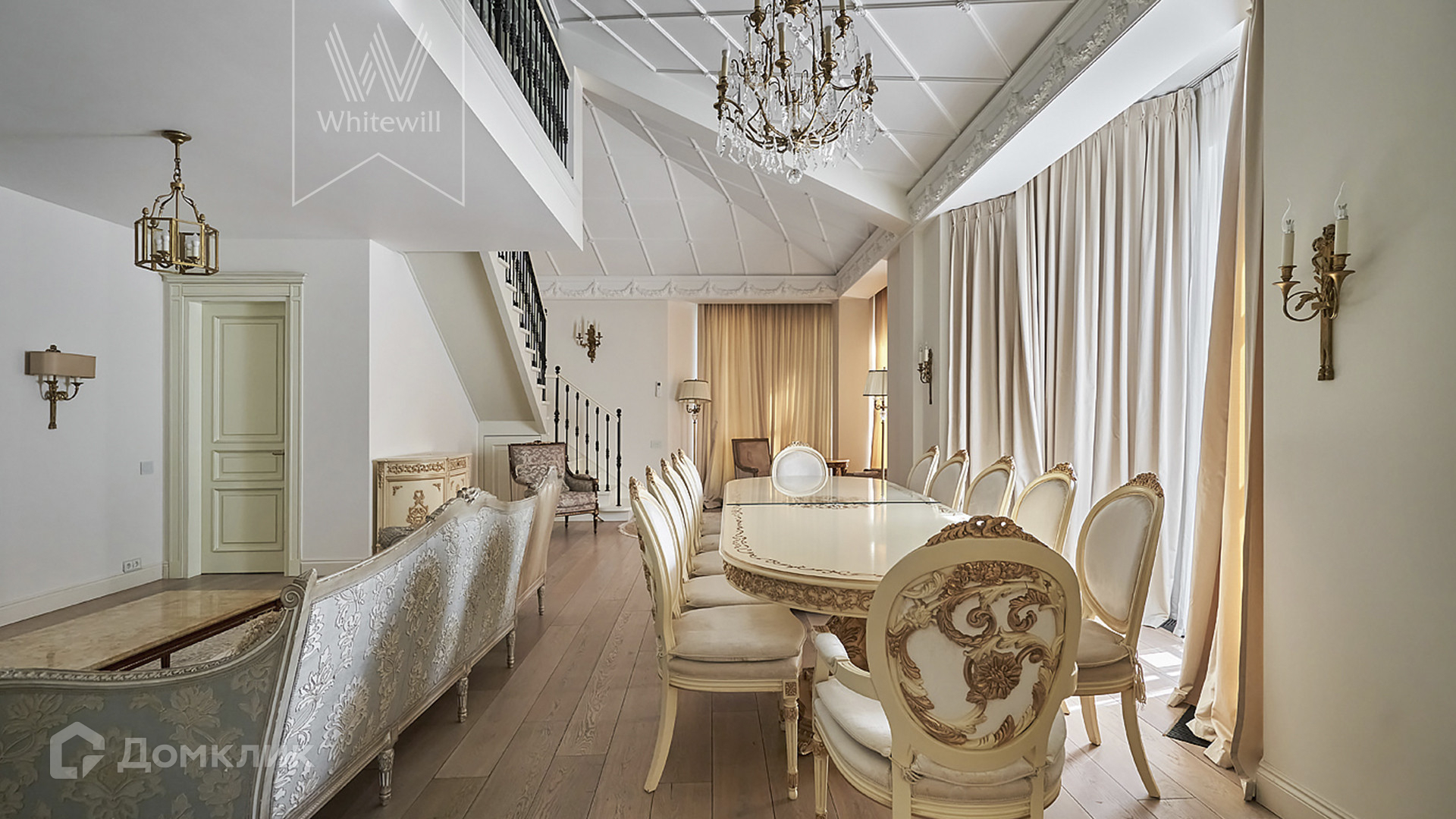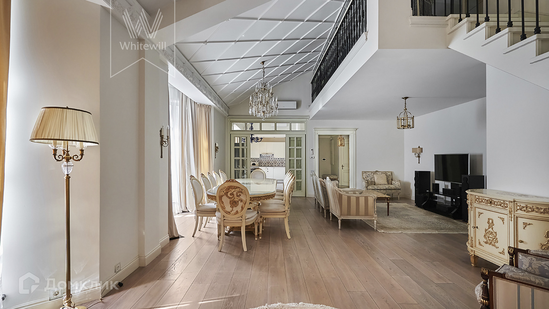ID 1 489. С коллегами работаем 50/50. Светлый двухуровневый пентхаус площадью 280 м² в малоэтажном комплексе Green Hills на набережной Москвы-реки. Выполнен дизайнерский ремонт с использованием премиальных материалов, интерьер оформлен в стиле современной классики. Высокие потолки, более 4 метров. Окна выходят в зелёный двор с крупномерными деревьями.