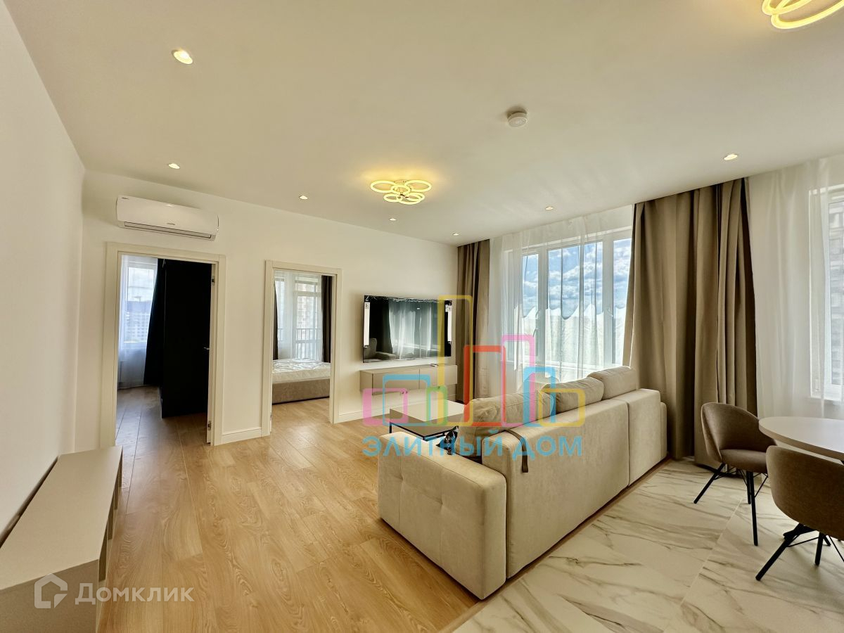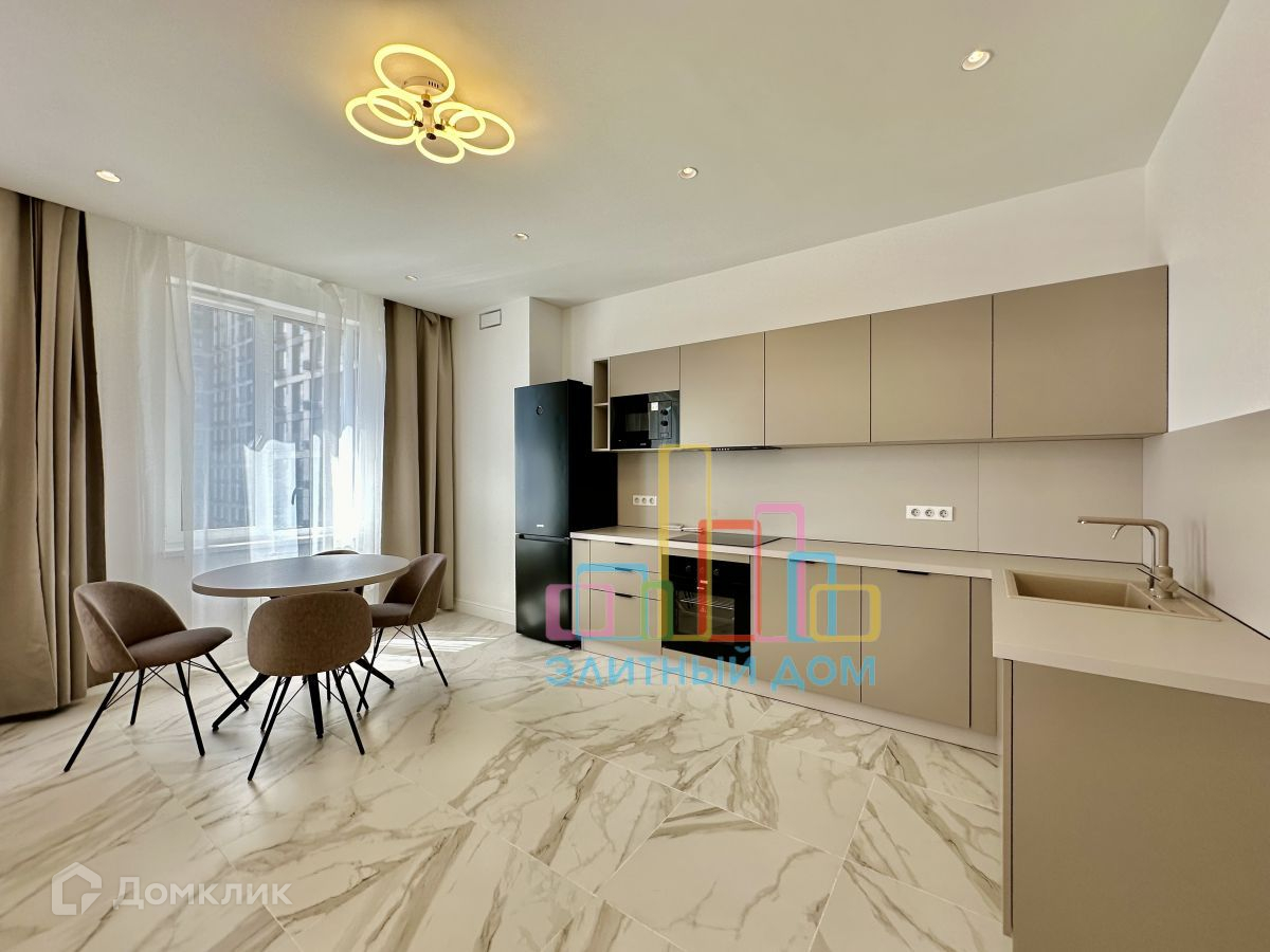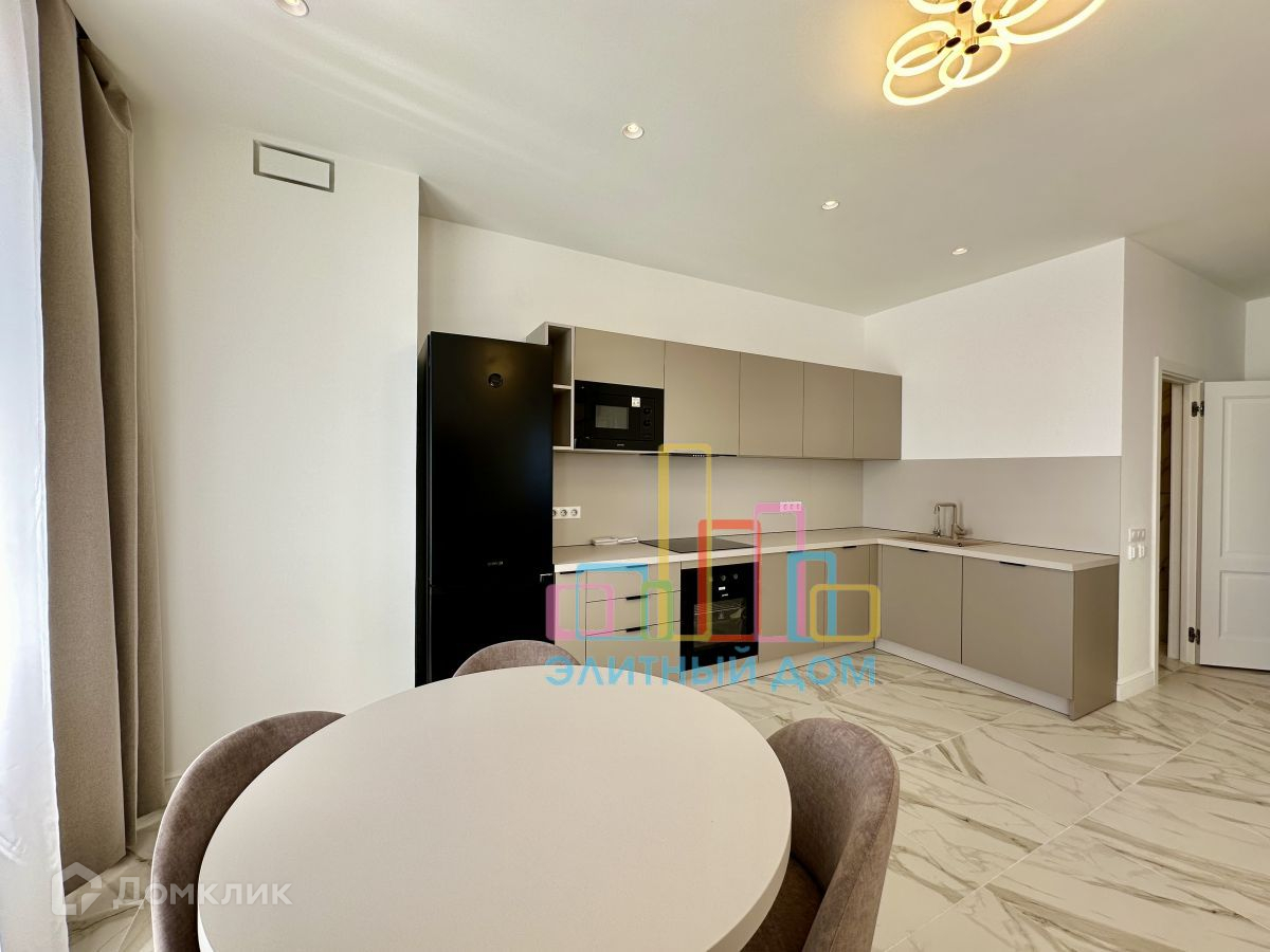 Квартира укомплектована всей необходимой мебелью и бытовой техникой для комфортного проживания, включая посудомоечную машину и кондиционеры в каждой комнате.