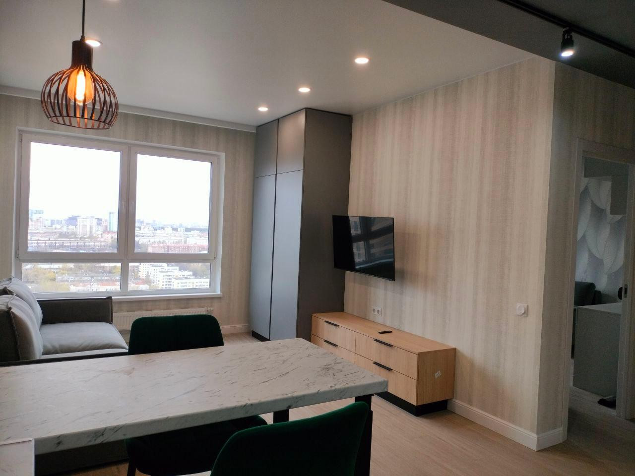 Квартира только после ремонта, сдается  впервые!  Оборудована всей необходимой для проживания мебелью и техникой: есть кухонный гарнитур, варочная панель, духовой шкаф, микроволновка, посудомоечная и стиральная машины, телевизор, кондиционер, холодильник, утюг. Проведён интернет с Wi-Fi и подключено кабельное/цифровое ТВ.