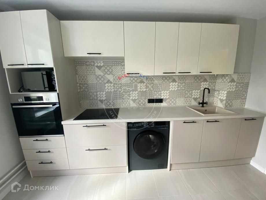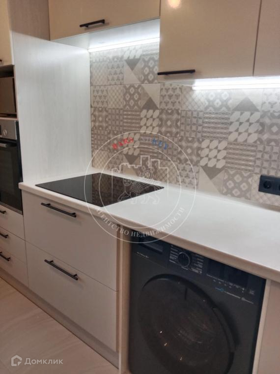 Новый кухонный гарнитур с встроенной бытовой техникой-посудомоечная машина, варочная панель ,духовой шкаф, СВЧ, стиральная машина, двухкамерный холодильник, электрочайник. Обеденная зона-раскладной стол+ стулья.