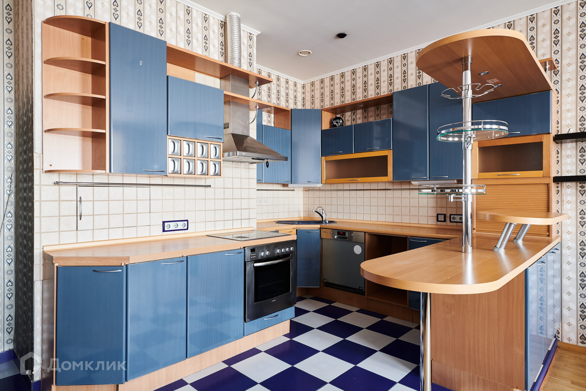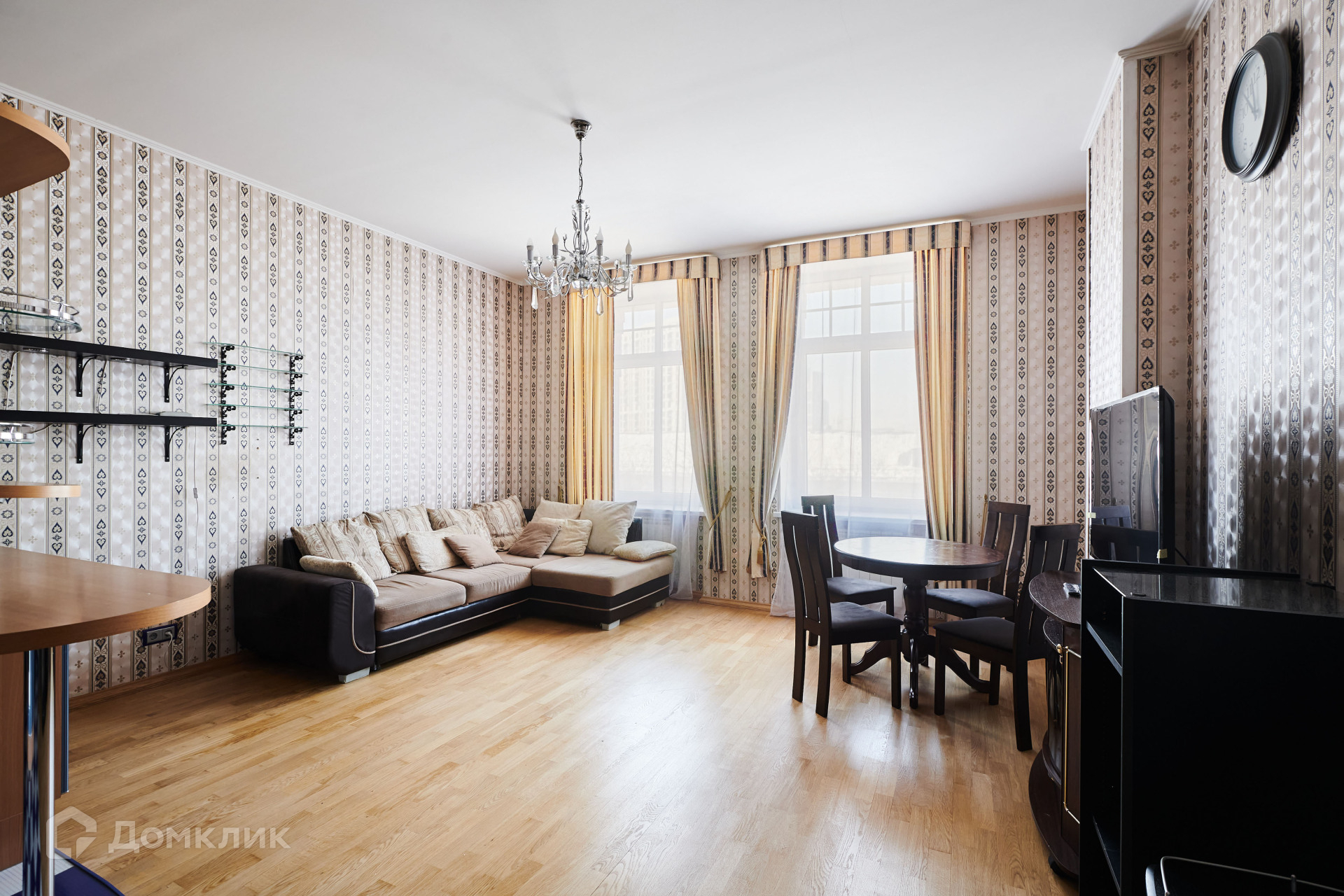 Кухонный гарнитур установлена вся необходимая бытовая техника, такая как стеклокерамическая плита, духовка, кофемашина, холодильник side by side с ледогенератором, микроволновка, посудомоечная машина, измельчитель пищевых отходов и фильтр для питьевой воды. Также имеется стиральная машина с функцией сушки. Вид из окон квартиры прекрасный благодаря панорамным окнам, которые выходят на две стороны - во двор и на улицу.