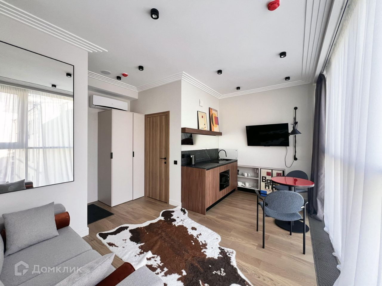 Арт. 66904548 Новый дом! В аренду на длительный срок предлагается новая, стильная студия в 1 мин. пешком от м. Маяковская и ул. Тверская. В квартире огромное панорамное окно в тихий зеленый двор! Кухонный гарнитур оборудован всей необходимой бытовой техникой. Удобный диван-кровать трансформер Olissys. Санузел совмещенный: душевая кабина, стиральная машина с функцией сушки. Платяной шкаф. Кондиционирование. Интернет, кабельное телевидение. Консьерж, видеонаблюдение. Престижная входная зона. Комиссия агентства 50 %.