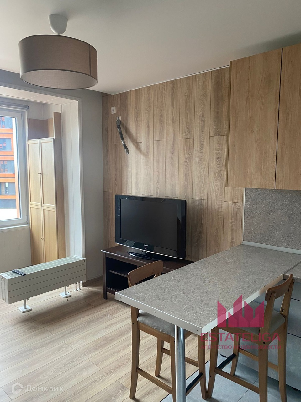 Кухонная гарнитура с барной стойкой и со всей необходимой техникой: электрическая варочная панель, духовка, вместительный холодильник, утюг. Напротив кровати - телевизор. Есть места для хранения - два вместительных шкафа. В коридоре есть зона для размещения верхней одежды. Совмещенный санузел с качественной сантехникой, стиральной машиной и ванной. Преимуществом также является  увеличенная площадь за счёт лоджии. Комплекс полностью заселён, Вас будут окружать дружелюбные соседи, во всех квартирах окончен ремонт.
