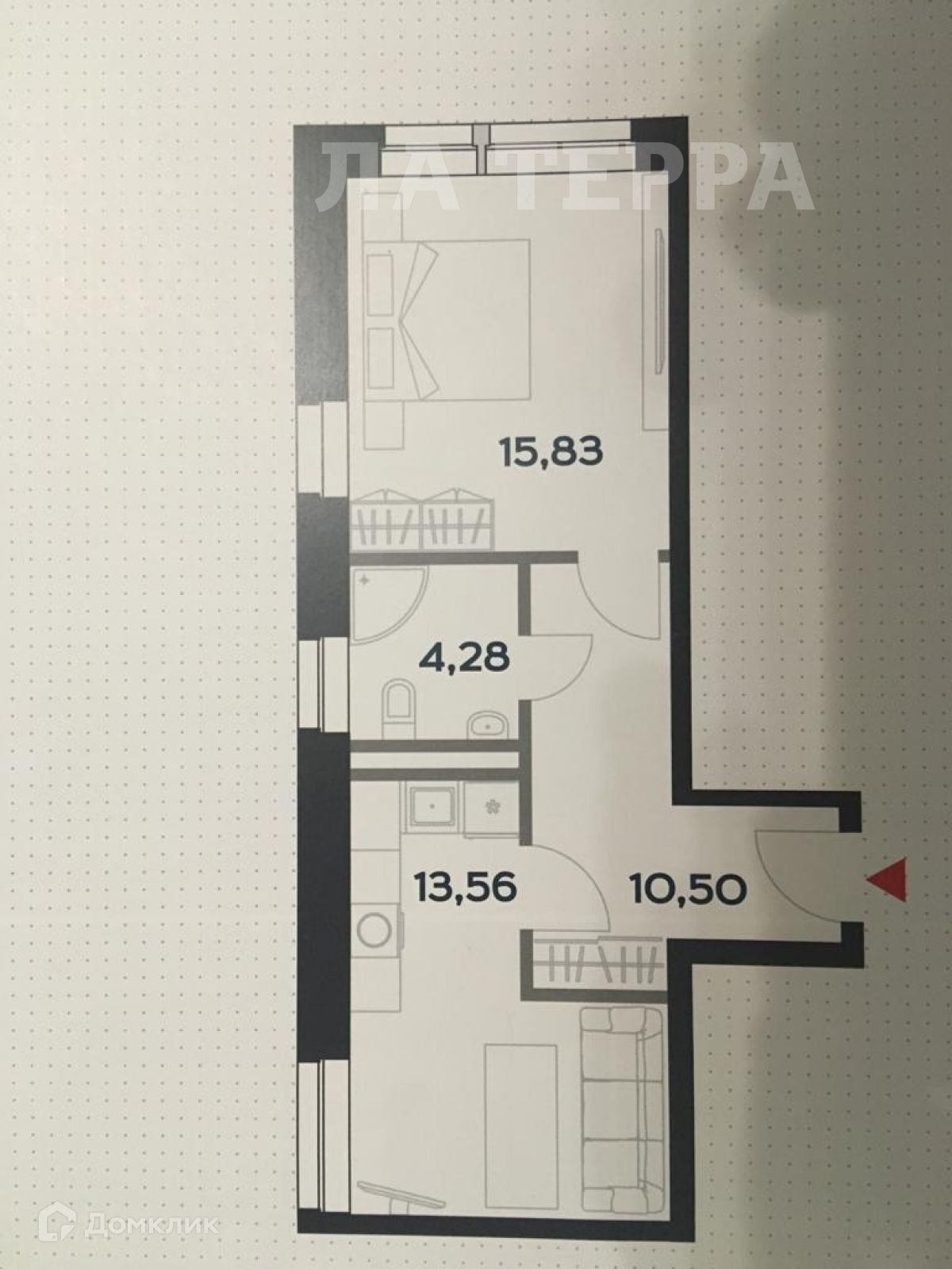 Общая площадь 44.2 м2