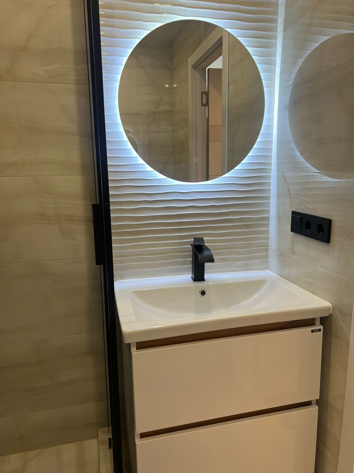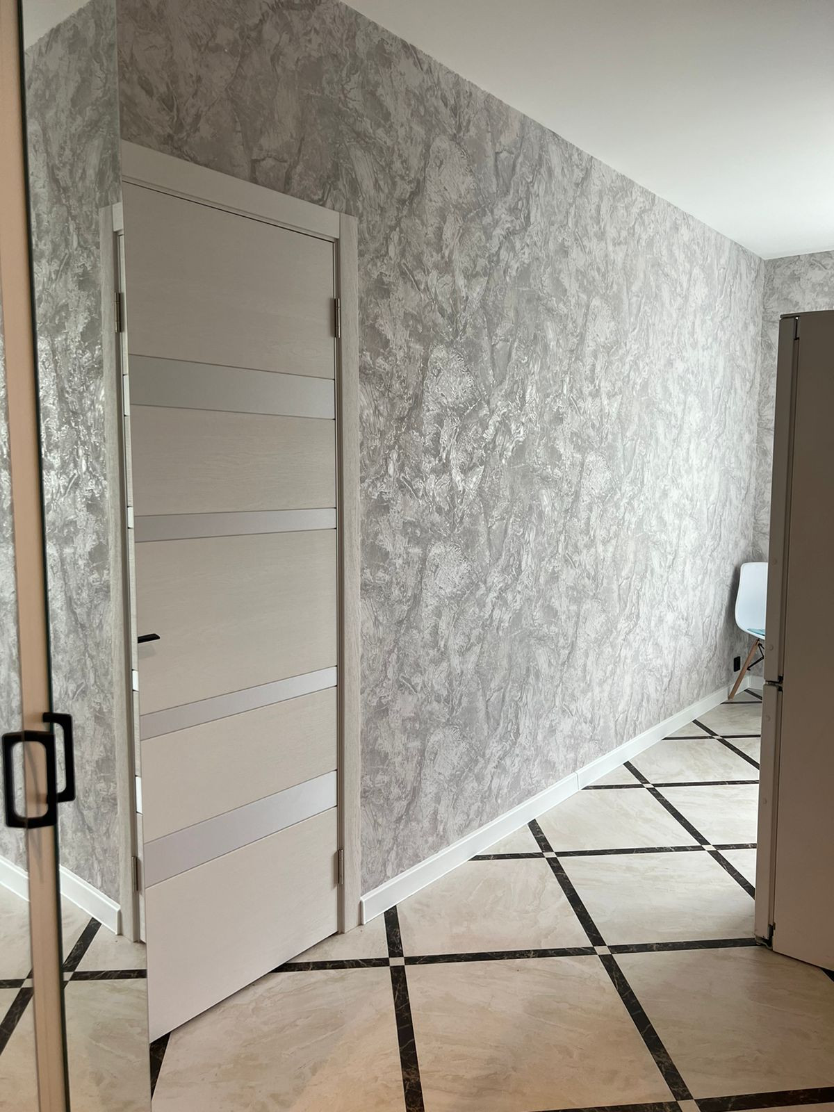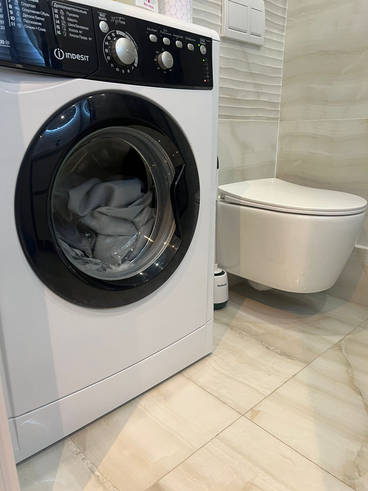 Совмещенный санузел с душевой кабиной, стиральной машиной и плиткой в потолок. Уютная прихожая с вместительным угловым шкафом и прихожей.