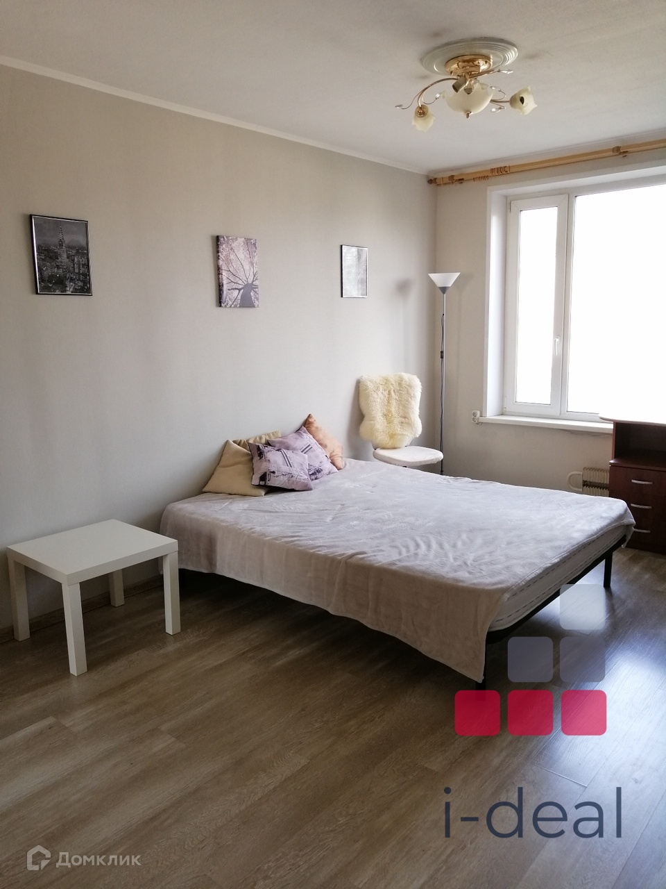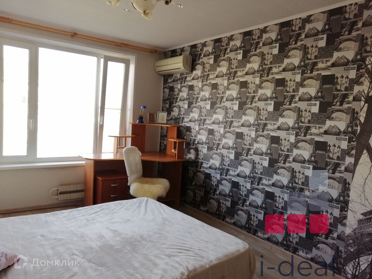 В гостиной есть шкаф, двуспальная КРОВАТЬ, РАБОЧЕЕ место, КОНДИЦИОНЕР. Есть все необходимое для комфортного проживания.