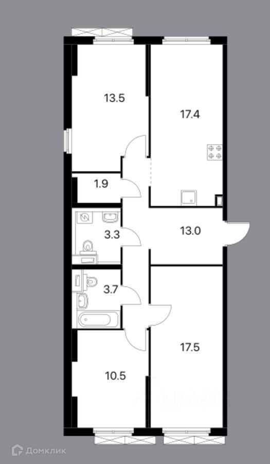 3-комнатная квартира, 80.8 м2, в аренду на длительный срок в Москве, Складочная улица, 6к1