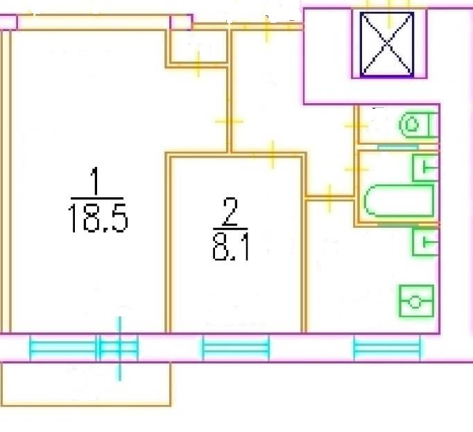 Общая площадь 40.5 м2