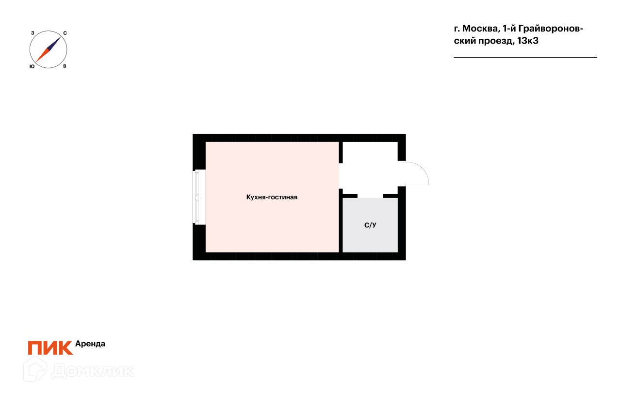 1-комнатная квартира, 19.3 м2, в аренду на длительный срок в Москве, 1-й Грайвороновский проезд, 13к3