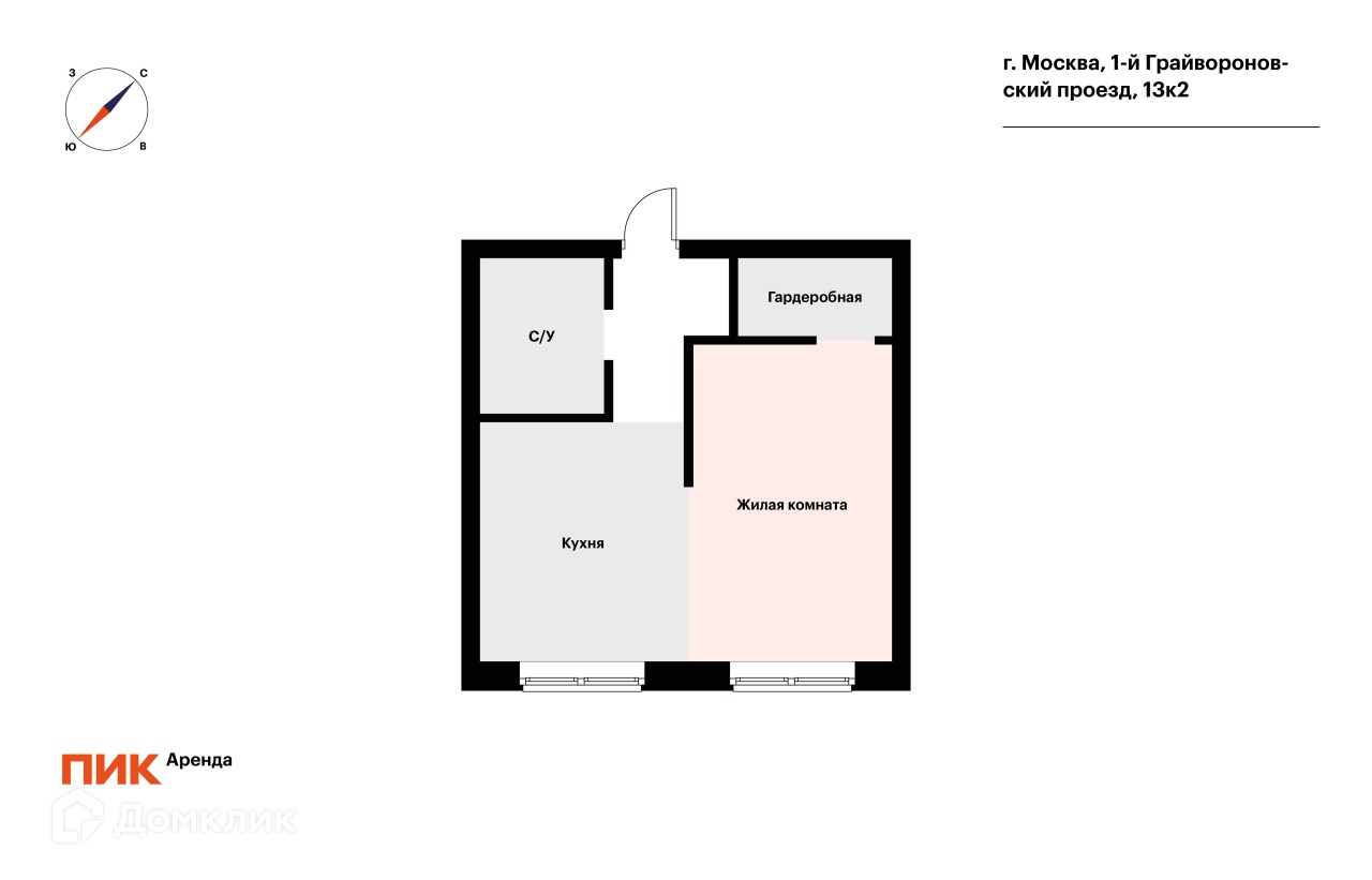 1-комнатная квартира, 31.5 м2, в аренду на длительный срок в Москве, 1-й Грайвороновский проезд, 13к2