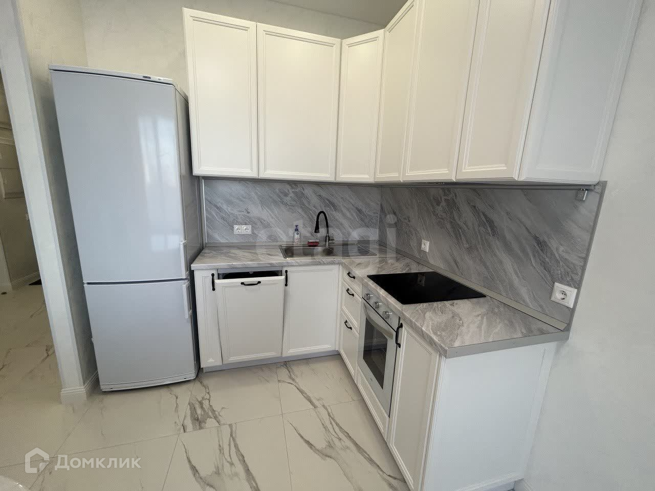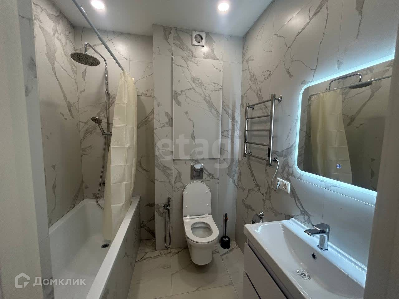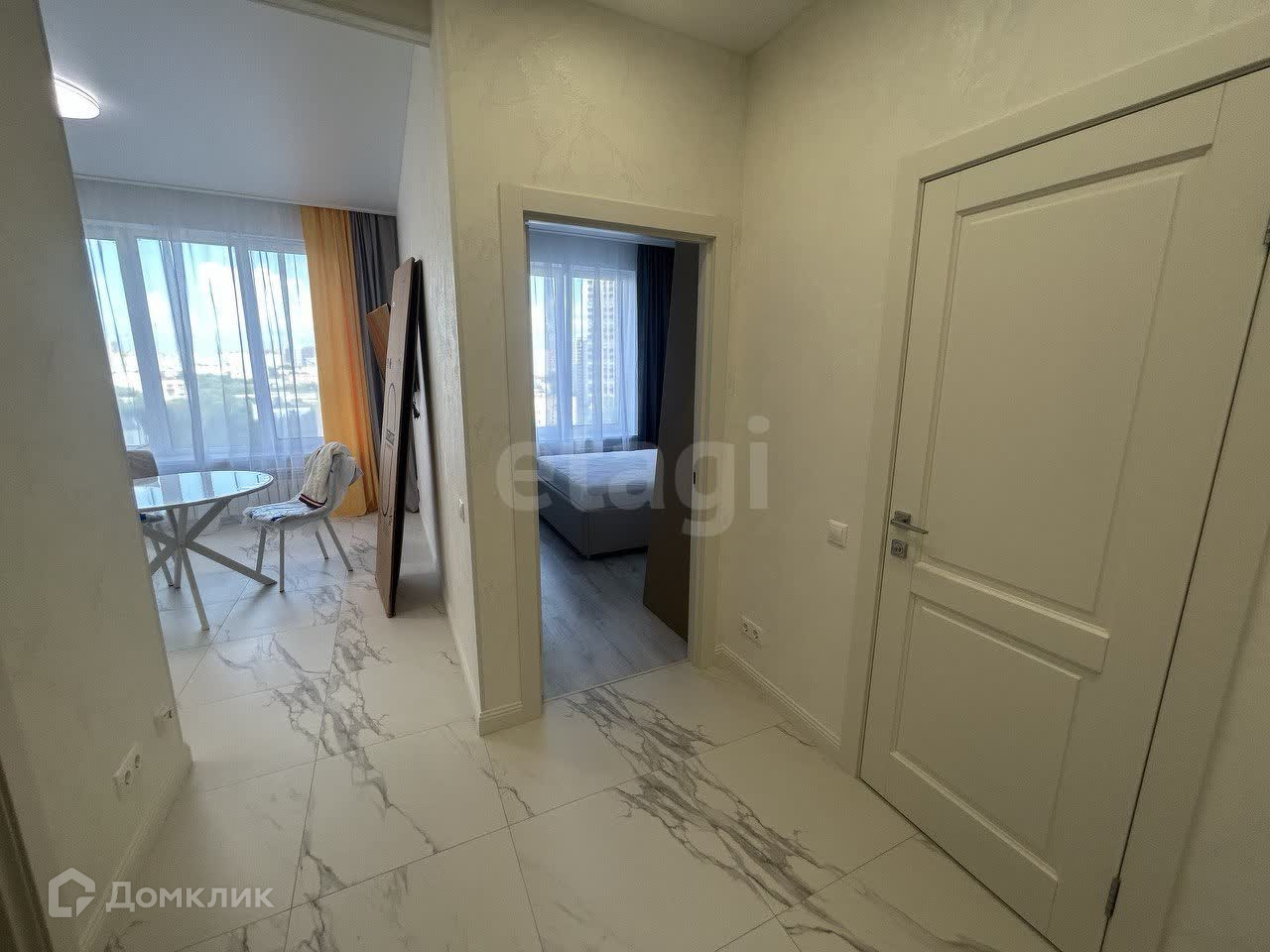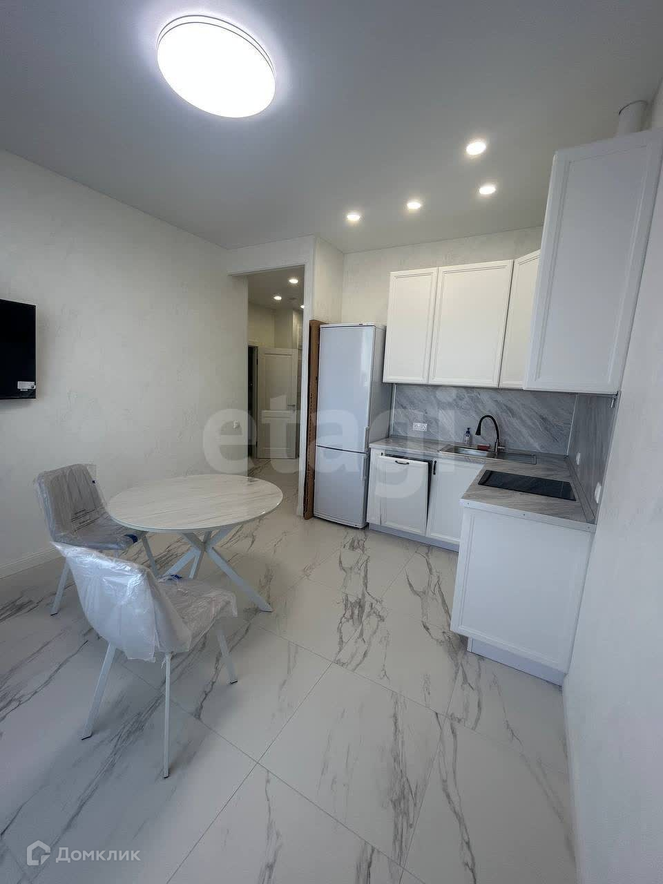 Квартира с дизайнерским ремонтом, бытовая техника и мебель есть. В уютной спальне стоит двуспальная кровать, комод для хранения вещей, и кондиционер. Светлая кухня оснащена всей бытовой техникой и кондиционером, так же имеется обеденный стол. Санузел совмещенный, в белый тонах, подчеркивая основной стиль, всей квартиры. В прихожей находится кладовое помещение для различного пользования, в котором находится стиральная машина.