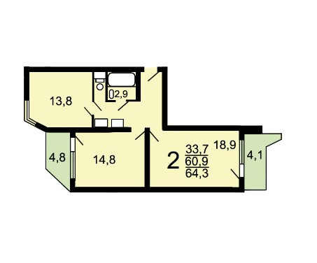 Общая площадь 64.3 м2