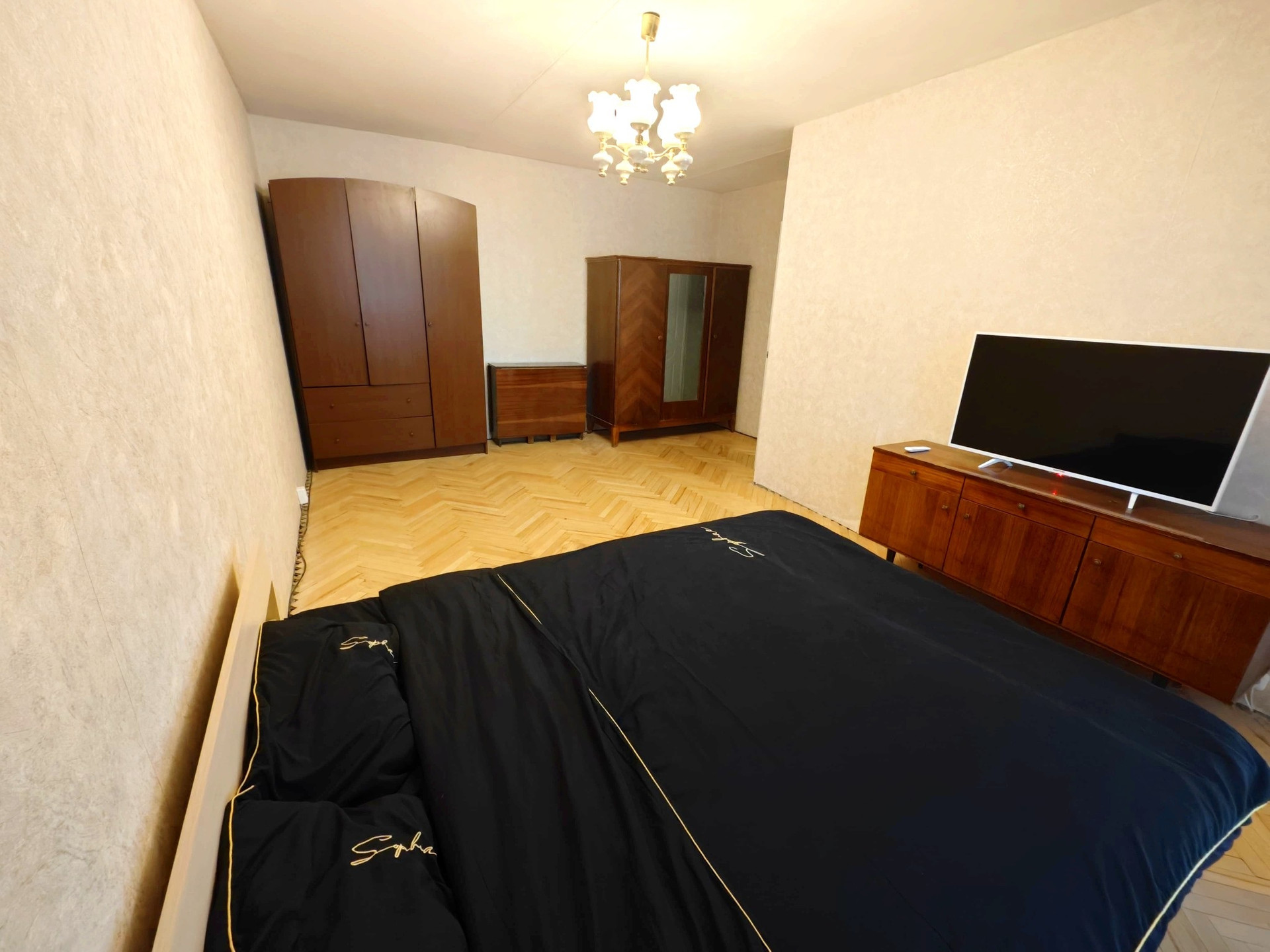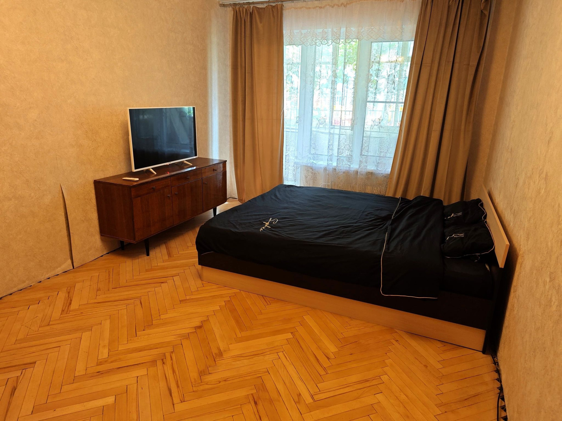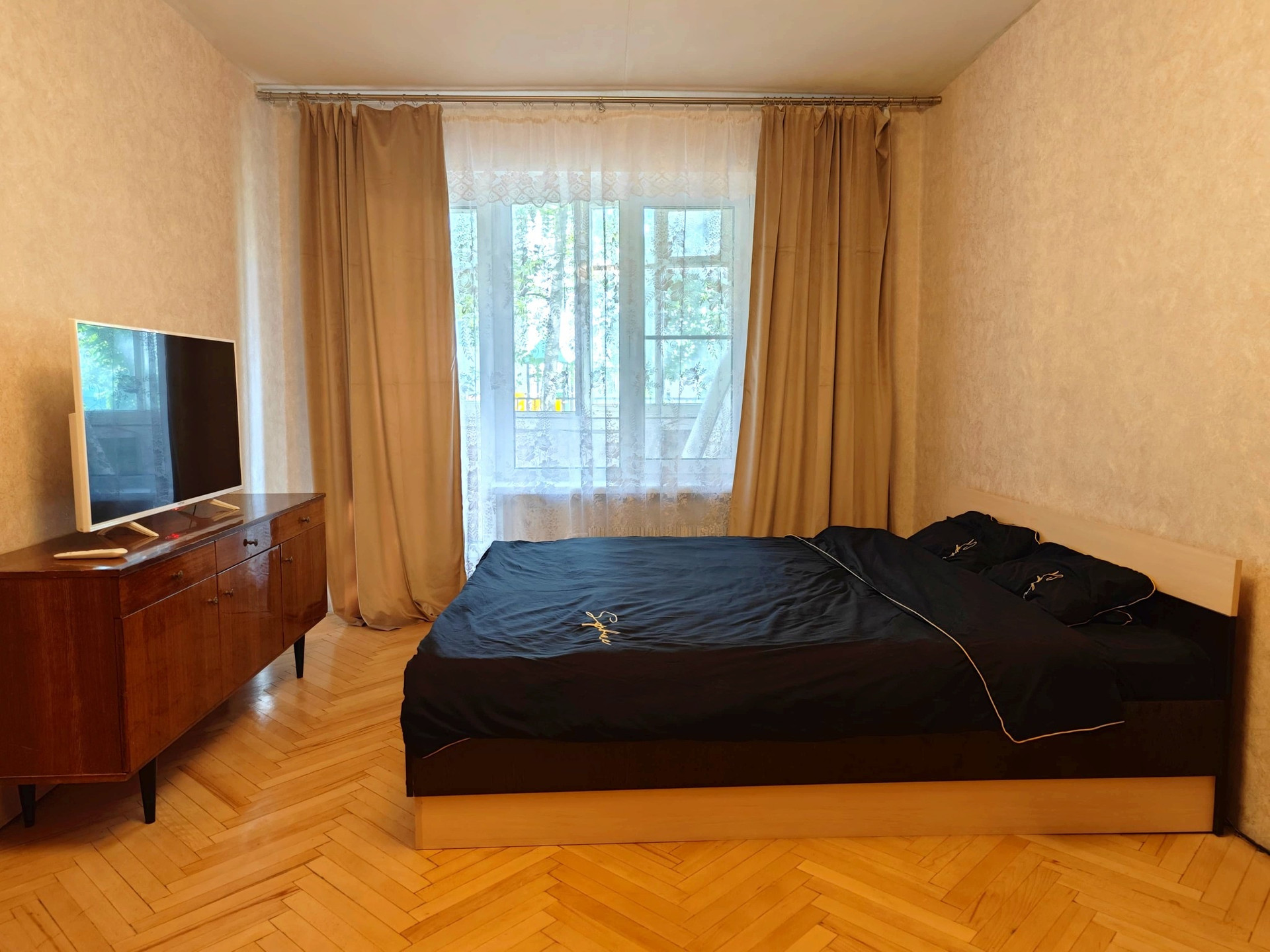 до ст. Сетунь. Все окна выходят на школу. В квартире есть всё для жизни: две двуспальные кровати + диван кровать. Есть стиральная машина, телевизор с Smart TV, интернет Wi-Fi, кондиционер и многое другое.