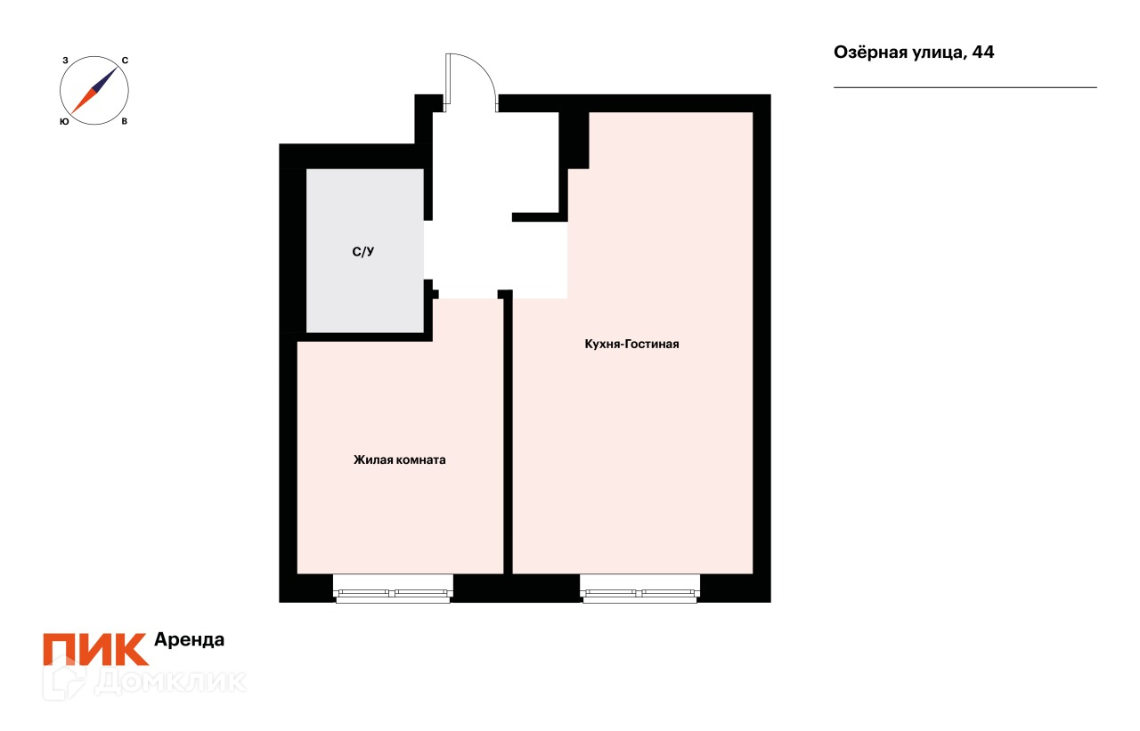 1-комнатная квартира, 35.9 м2, в аренду на длительный срок в Москве, Озёрная улица, 44