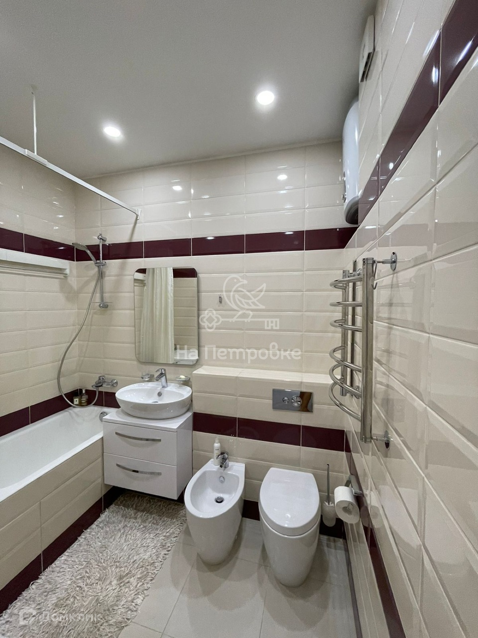 ВАННАЯ КОМНАТА: большая стиральная машина, биде, вместительные шкафы.