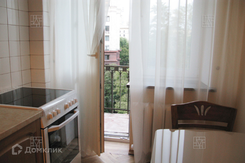 Лот: 24006. Предлагается в аренду светлая 2-х комнатная квартира в сталинской высотке. Общая площадь 65 кв.м. Комнаты смежно-изолированные по 18 кв.м. Кухня 7,8 кв.м. Прихожая. Коридор. Высота потолков 3,25 метра. Полы - паркет, стены - накат, подоконники - качественный гранит. Планировка оригинальная (50-х годов). Двери отреставрированы. Гостиная с нишей (альковом). На кухне - балкон. В спальне - лоджия. Квартира со свежим качественным ремонтом, полностью меблированная. Новая мебель в удачном сочетании с антикварным буфетом. Бытовая техника в полном ассортименте. Кондиционер, холодильник, микроволновая печь, стиральная машина, телевизор, интернет, утюг, гладильная доска, сушилка для белья, посуда, столовые приборы, другие бытовые принадлежности. Все окна с видом во двор. Подъезд ухоженный, домофон, 6-местный лифт. Двор большой, тихий, зелёный, есть сквер, детские и спортивные площадки. Территория дома огорожена - 4 въезда под шлагбаумами. Автопарковка во дворе.