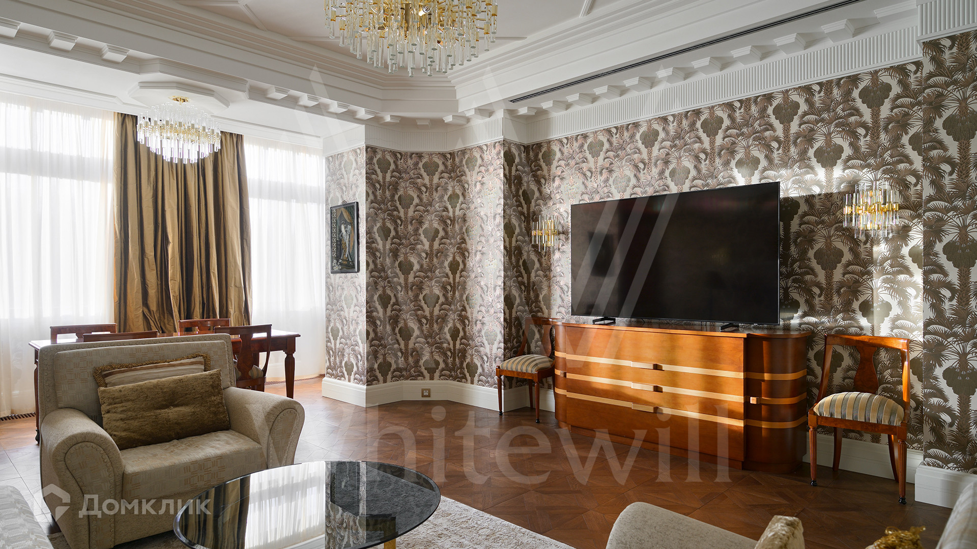 ID 2 270. С коллегами работаем 50/50. Квартира  общей площадью 156 м² в клубном доме «Парк Палас». Квартира расположена на 5-м этаже. Выполнен дизайнерский ремонт в классическом стиле с использованием премиальных материалов. Большие окна и потолки высотой 3,2 метра наполняют пространство естественным светом.