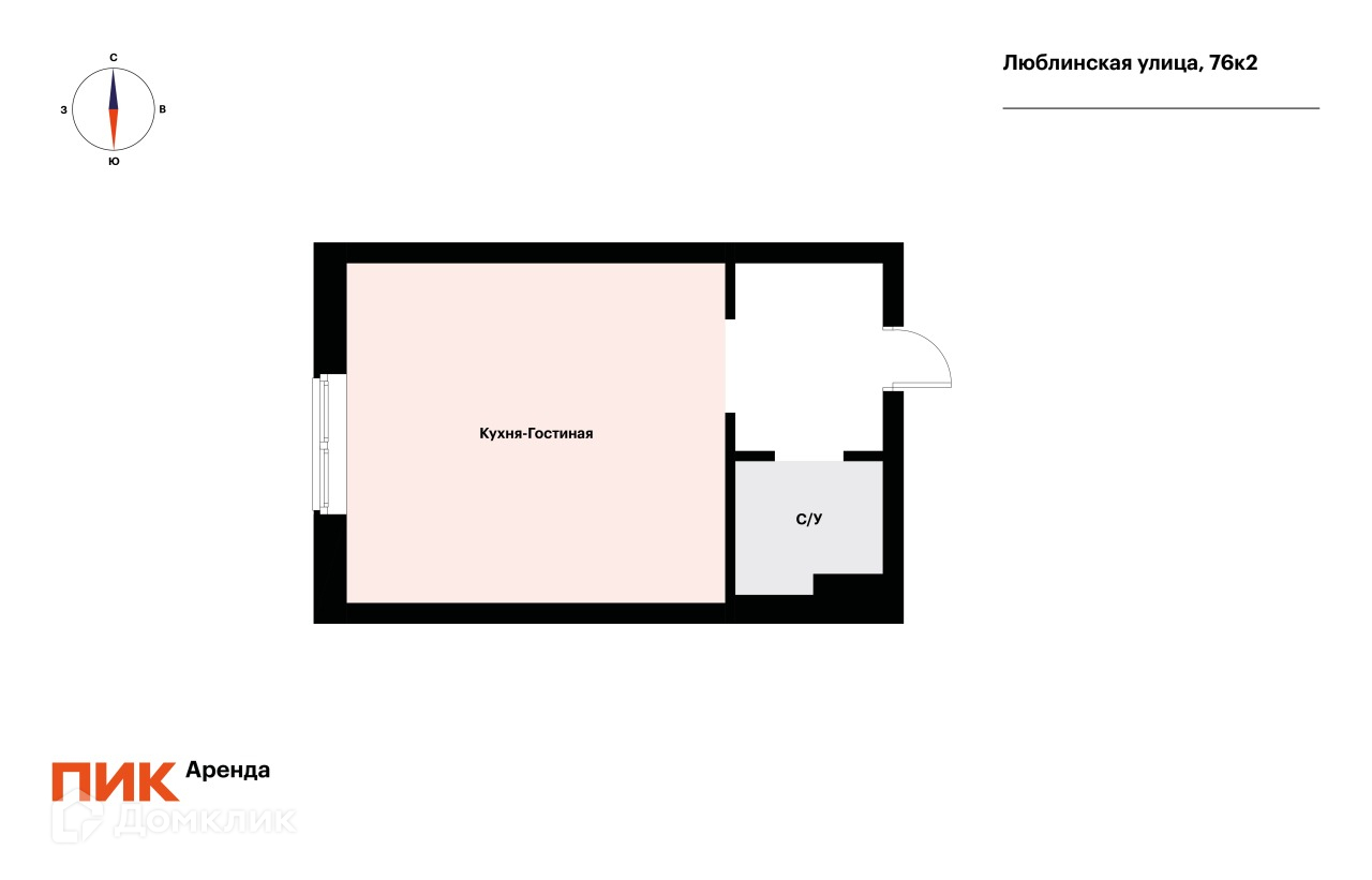 1-комнатная квартира, 19.5 м2, в аренду на длительный срок в Москве, Люблинская улица, 76к2