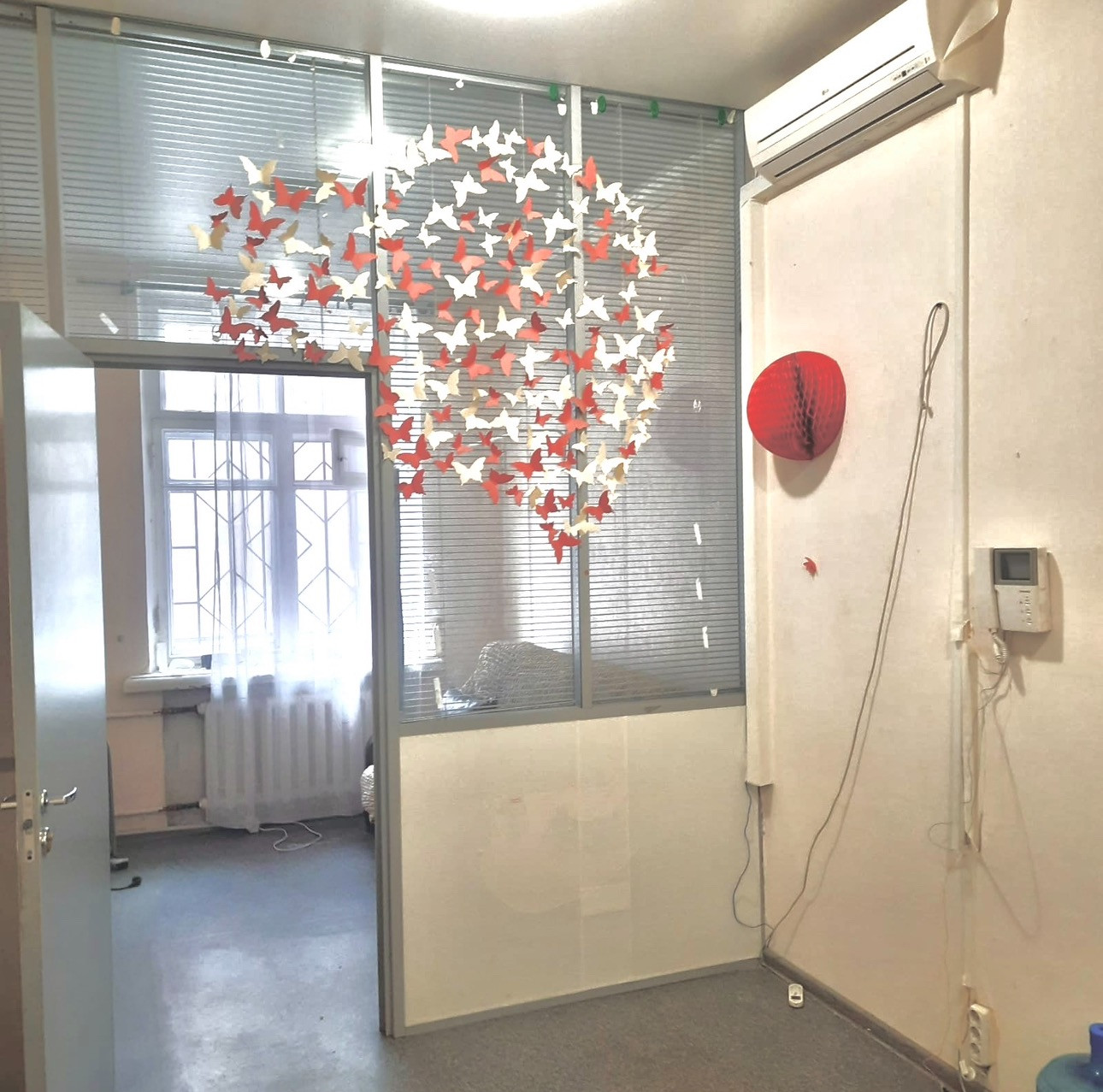 Много света. Общая площадь квартиры составляет 78 кв. м . Помещение находится на первом этаже пятиэтажного кирпичного дома, построенного в 1959 году. Высота потолков — 3.2 метра. Окна выходят на улицу.