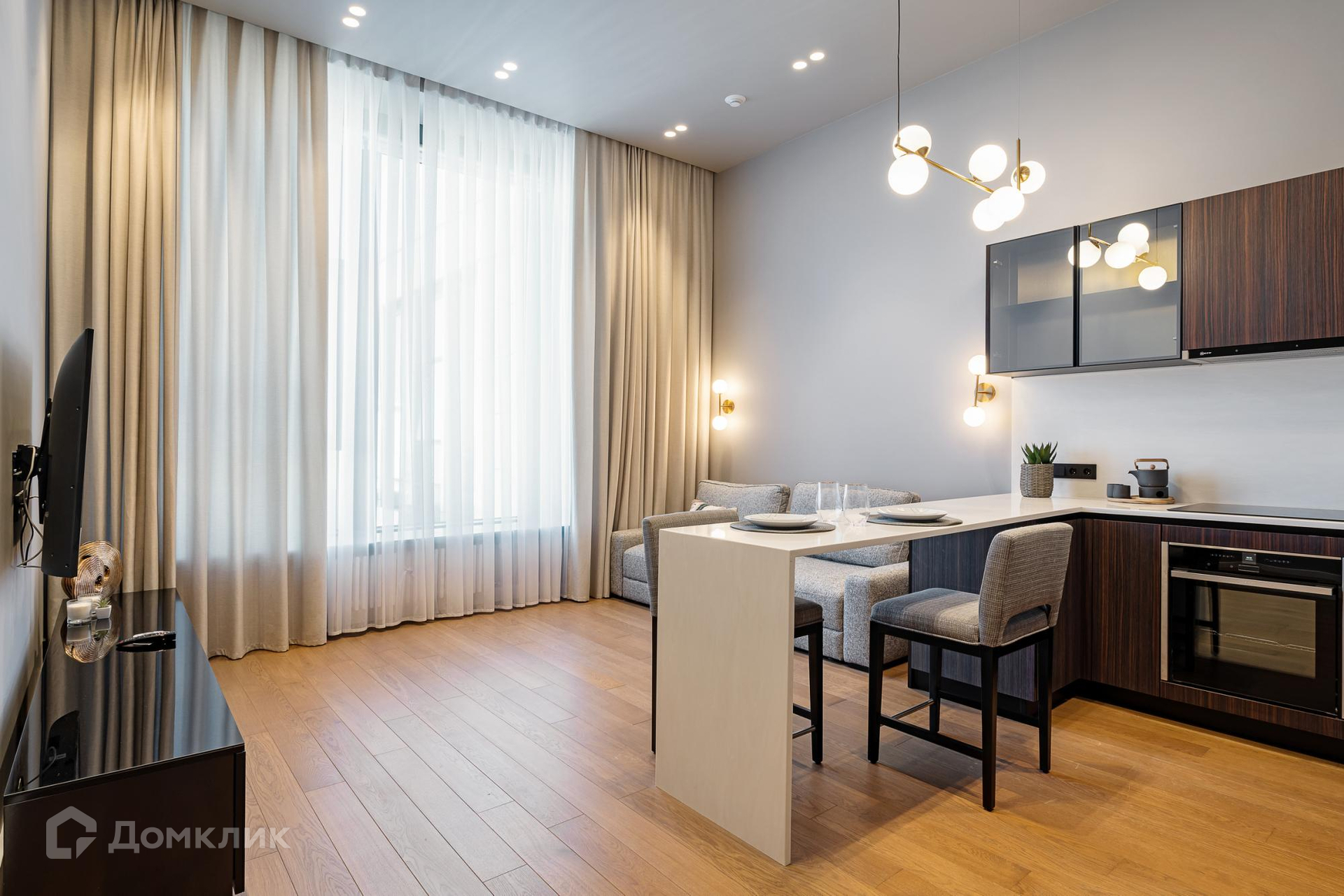 Элегантный апартамент с индивидуальным интерьерным решением в современном стиле, всей необходимой мебелью и техникой, разработанной с использованием Smart technology.