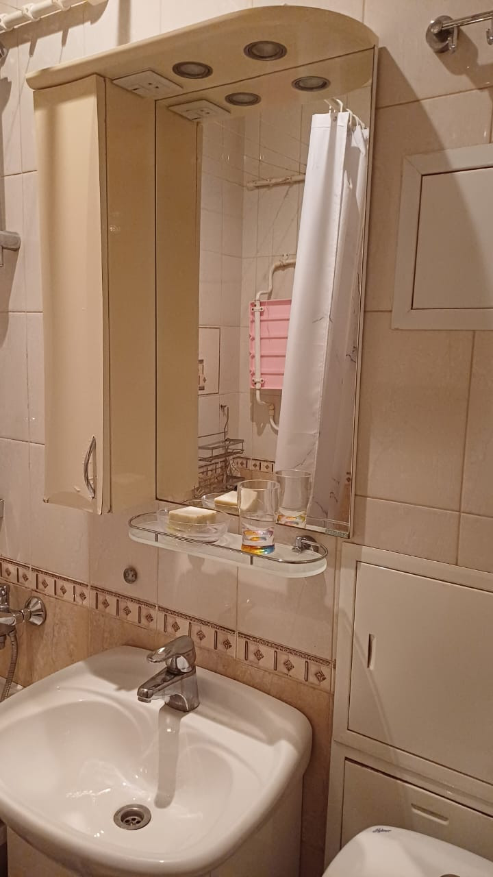 Квартира в хорошем состоянии, чистая (проведена профессиональная уборка) есть вся необходимая мебель и бытовая техника: две кушетки, раскладной диван, шкаф, холодильник, СВЧ печь, стиральная машина.