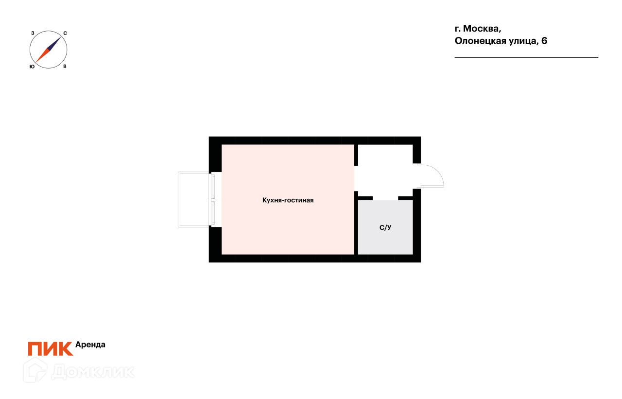 Квартира студия, 23 м2, в аренду на длительный срок в Москве, Олонецкая улица, 6