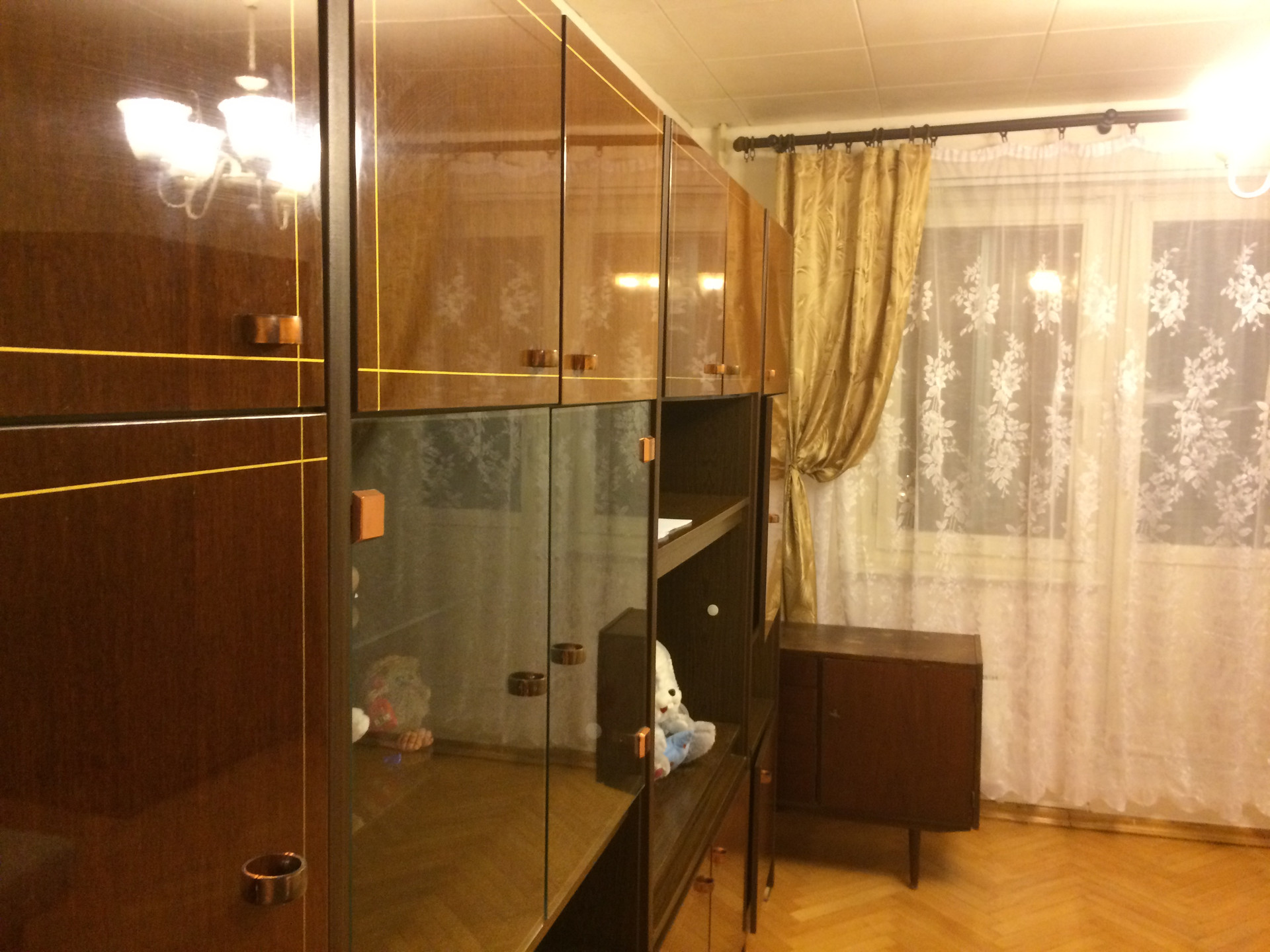 Есть всё в рабочем, исправном состоянии для комфортного проживания в квартире: один раскладывающийся диван-кровать, стиральная машина «BOSСH», красивая германская мебельная стенка, платяной шкаф и тумбочка для большого количества одежды и вещей, итальянский кухонный гарнитур ELT «Классика» - «Беатриче» (с подсветкой и вытяжкой), встроенная импортная техника: стеклокерамическая варочная панель с духовым шкафом «ARISTON»; холодильник «STINOL», микроволновая печь, кухонный стол с табуретами. Также есть раздельный санузел с мраморными полами и импортной сантехникой «ROCA». Полы в комнате и коридоре – настоящий деревянный паркет. Интернет-кабель в квартире.