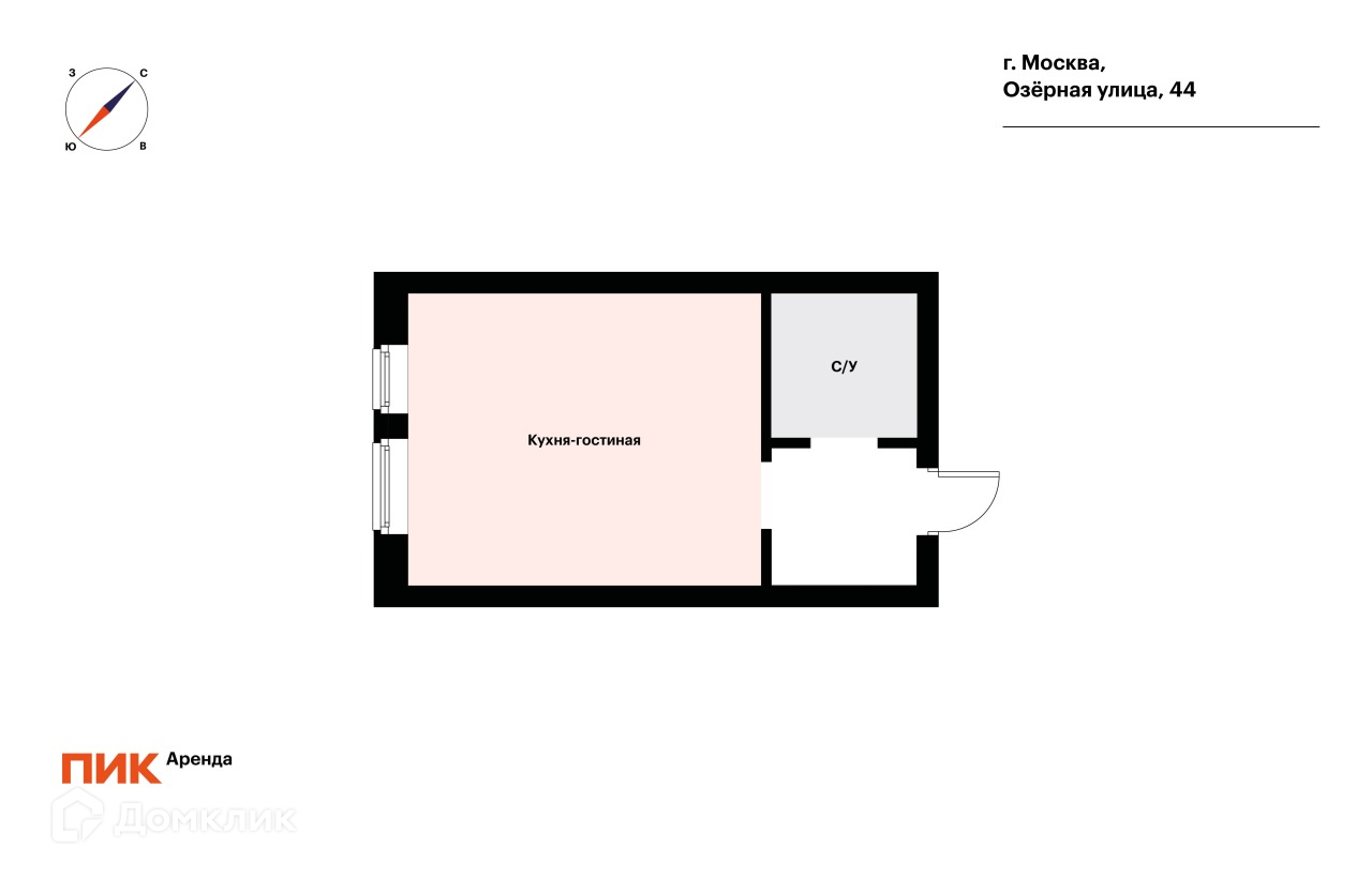 Квартира студия, 20 м2, в аренду на длительный срок в Москве, Озёрная улица, 44