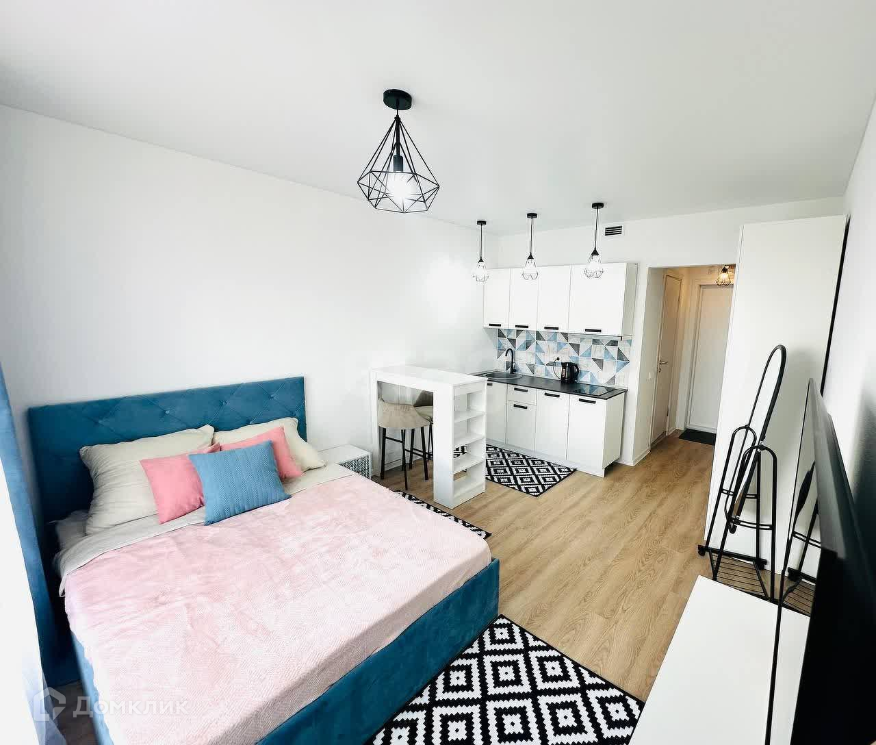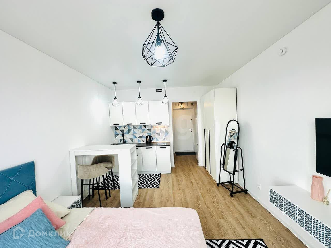 Эта квартира полностью готова к вашему заселению: здесь есть всё необходимое для комфортного проживания. Все предметы мебели и бытовая техника абсолютно новые! В вашем распоряжении — просторная кровать, обеденная зона, стильный кухонный гарнитур. Окна выходят на улицу, что обеспечивает хорошее освещение и свежий воздух.