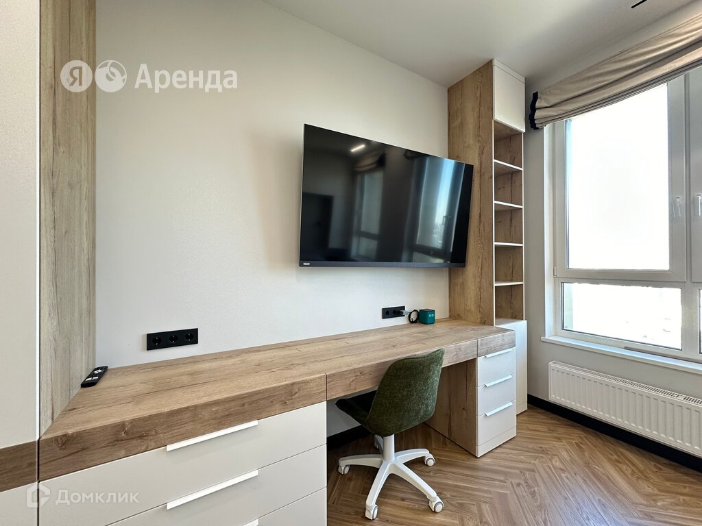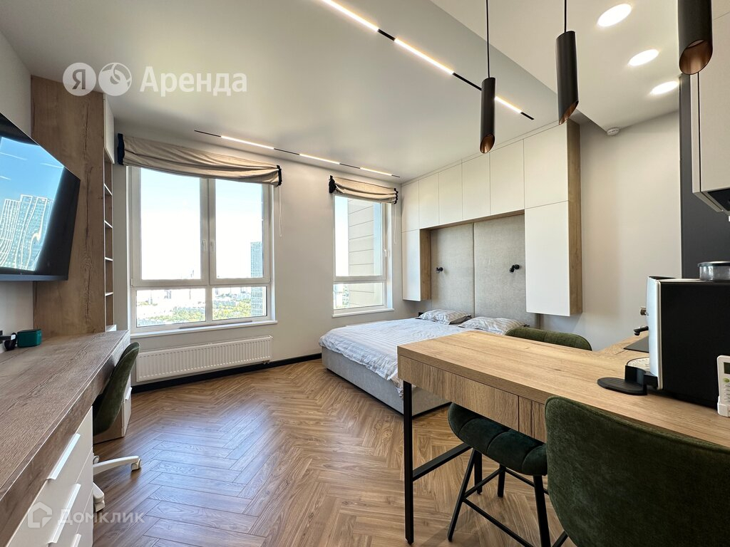 Сдаётся впервые студия площадью 28 кв.м. с дизайнерским ремонтом на 39 этаже в 41-этажном доме. В квартире установлен умный дом. Из техники есть: