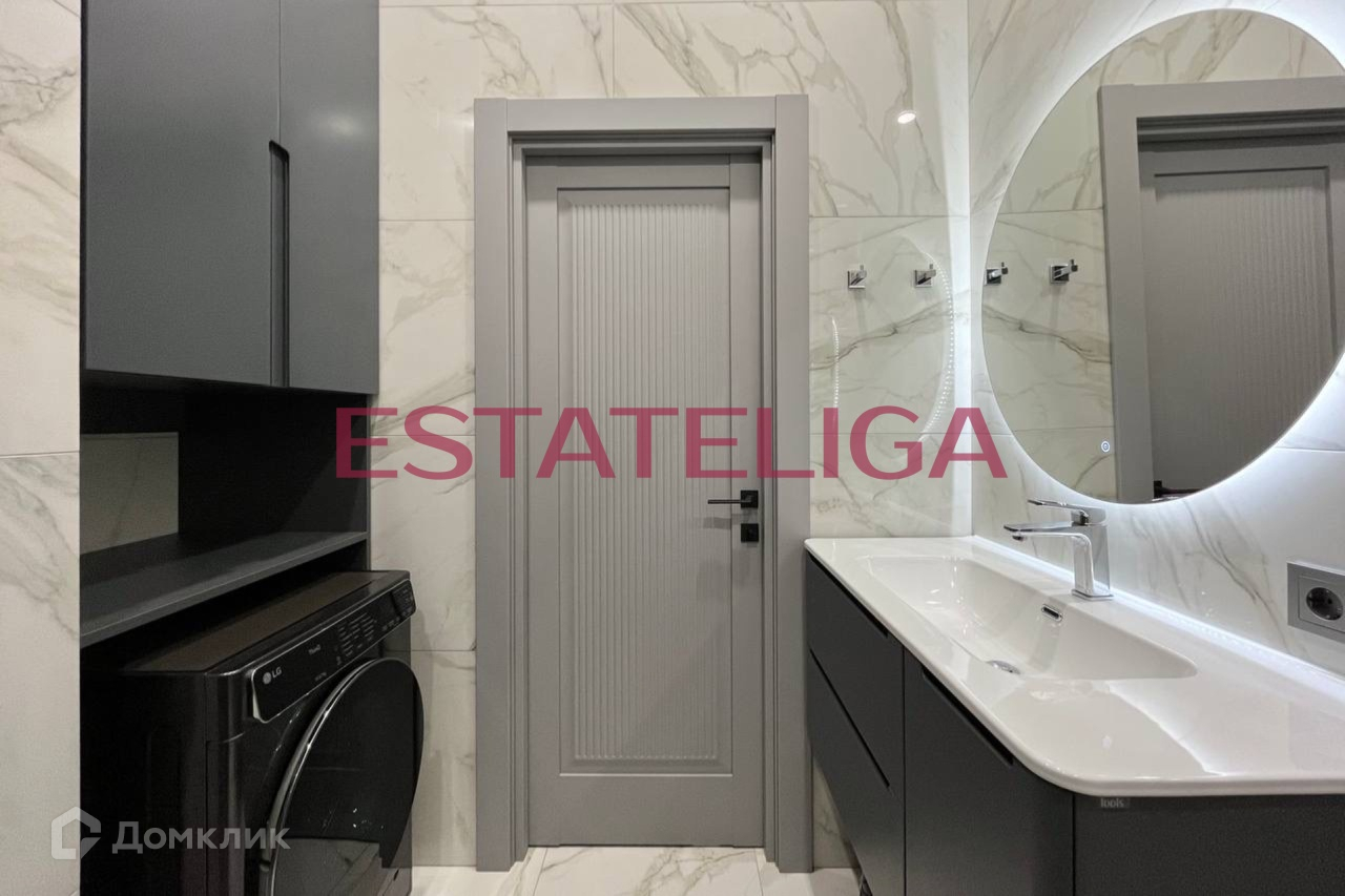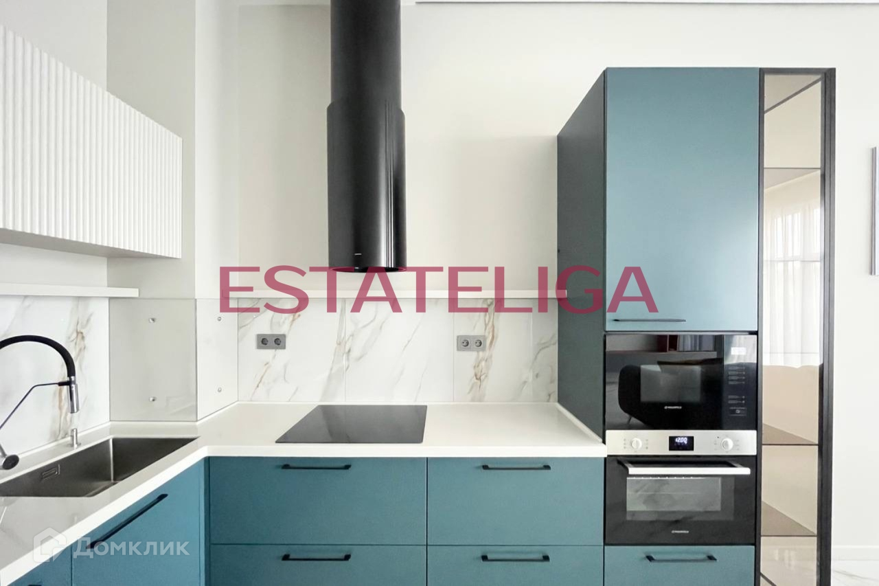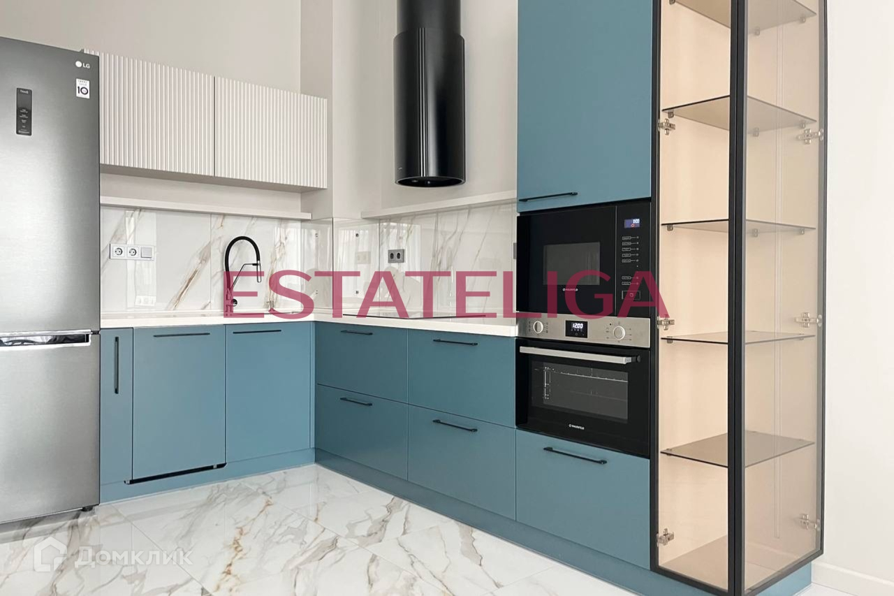 Кухня укомплектована всей необходимой встроенной бытовой техникой иностранных брендов: варочная панель, духовой шкаф, микроволновая печь, посудомоечная машина, холодильник, вытяжка, стиральная машина с сушкой. Телевизор в гостиной.