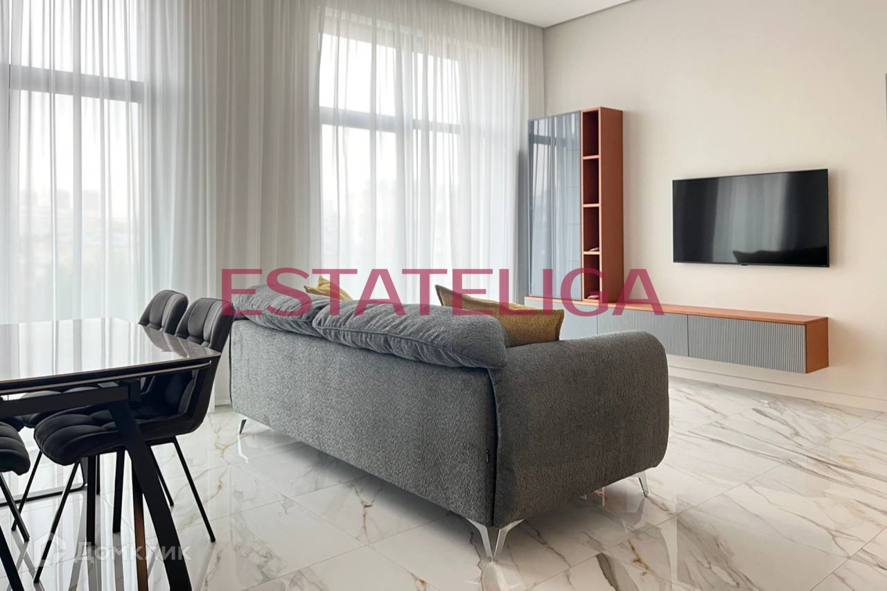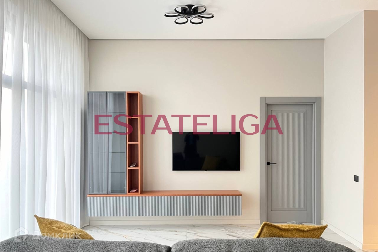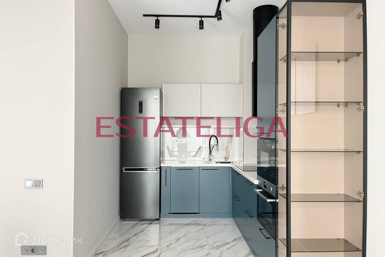 Кухня укомплектована всей необходимой встроенной бытовой техникой иностранных брендов: варочная панель, духовой шкаф, микроволновая печь, посудомоечная машина, холодильник, вытяжка, стиральная машина с сушкой. Телевизор в гостиной.