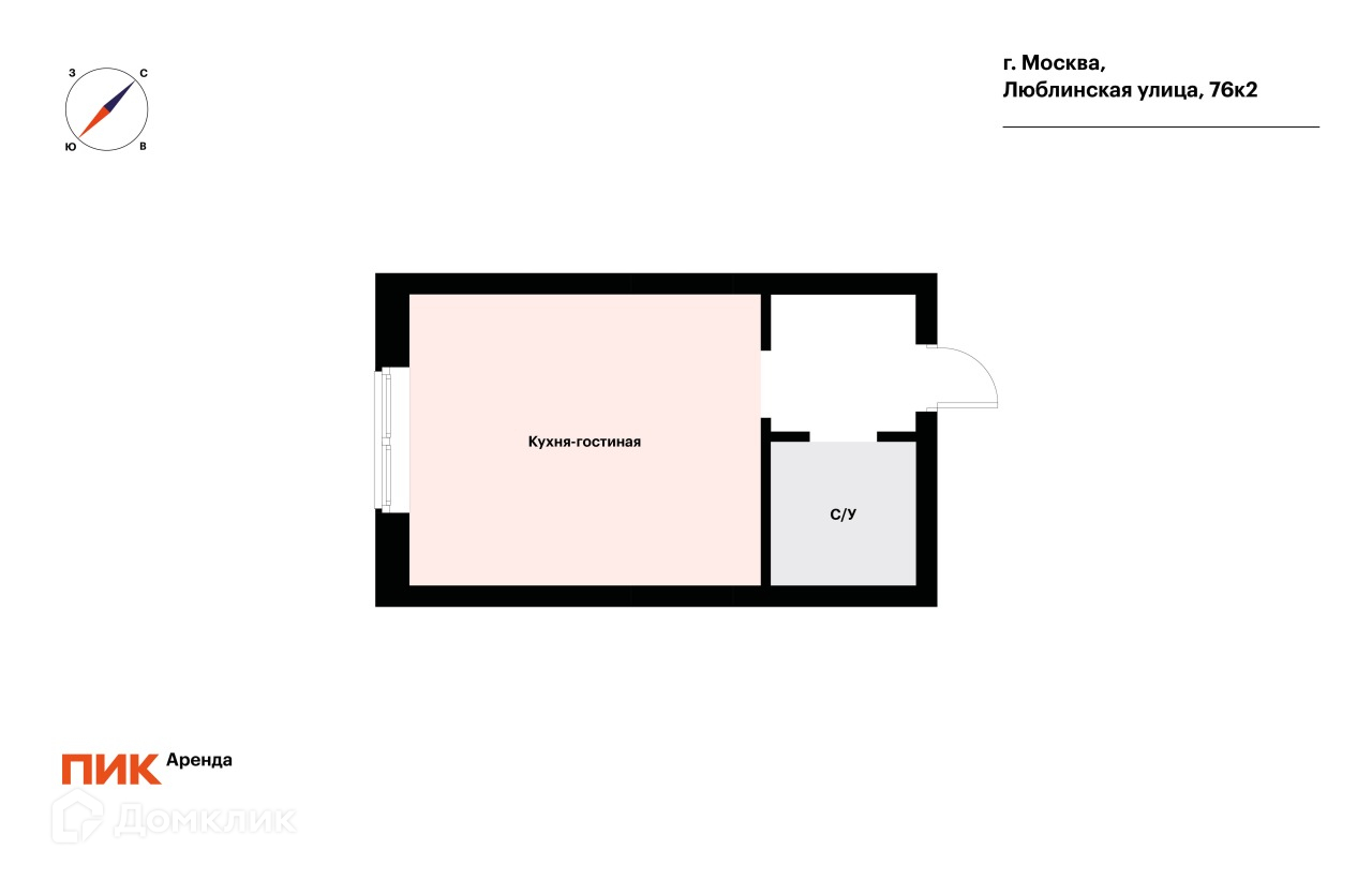 1-комнатная квартира, 21.3 м2, в аренду на длительный срок в Москве, Люблинская улица, 76к2