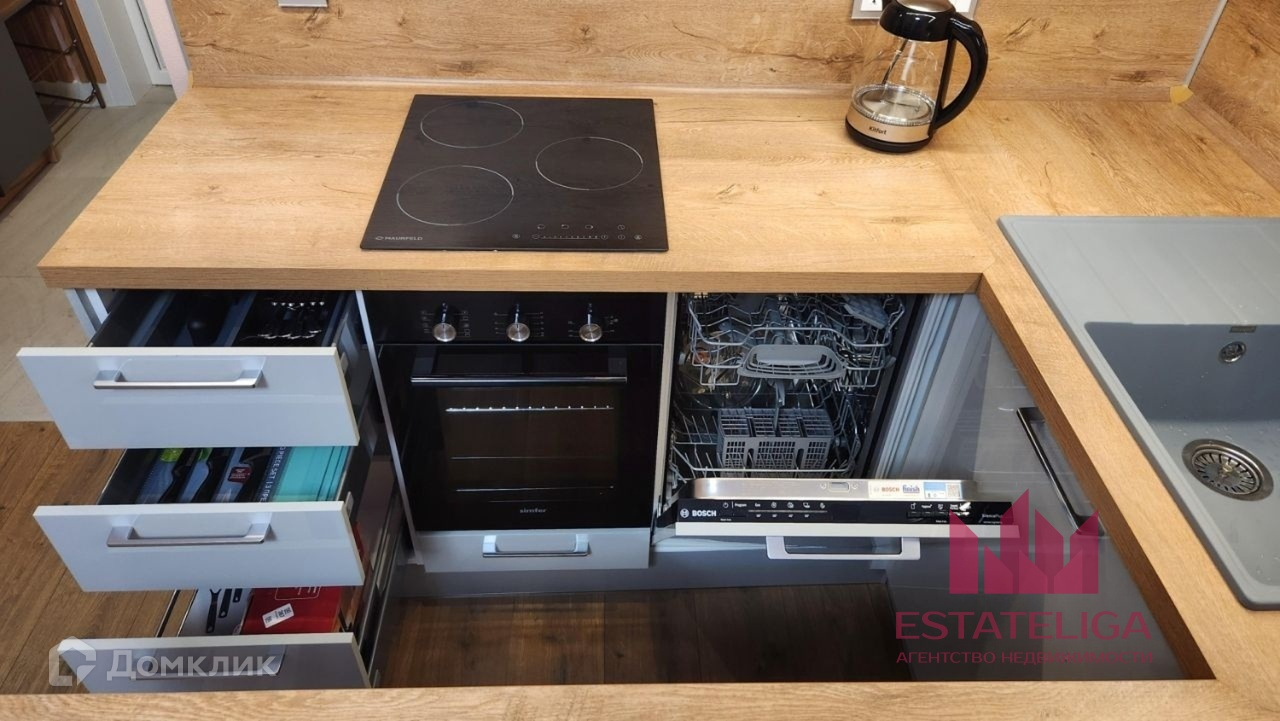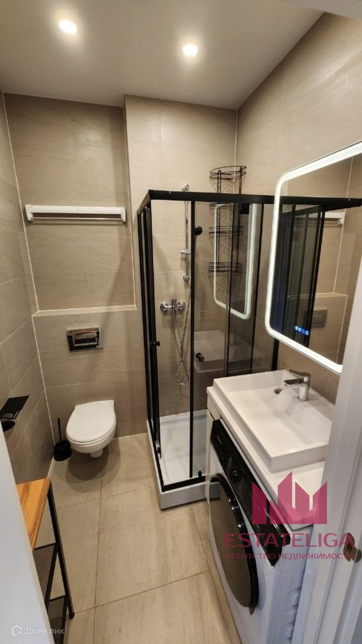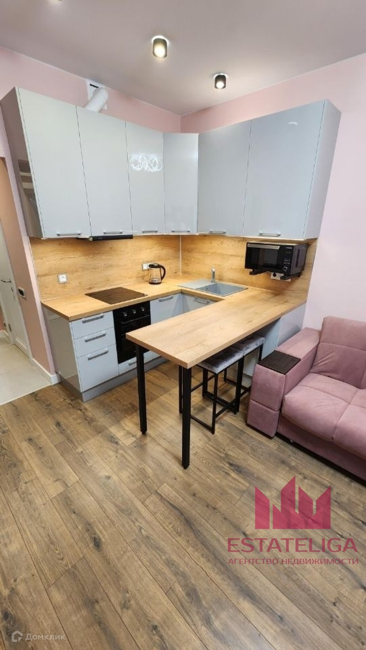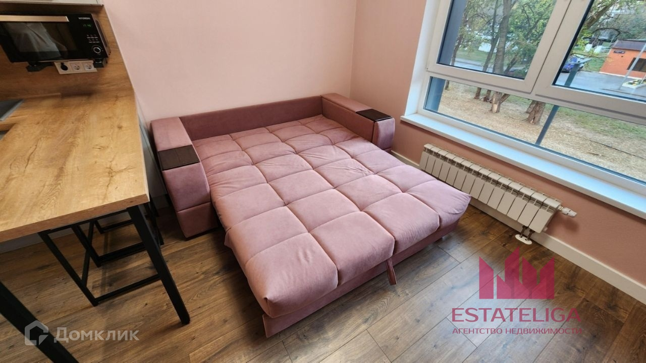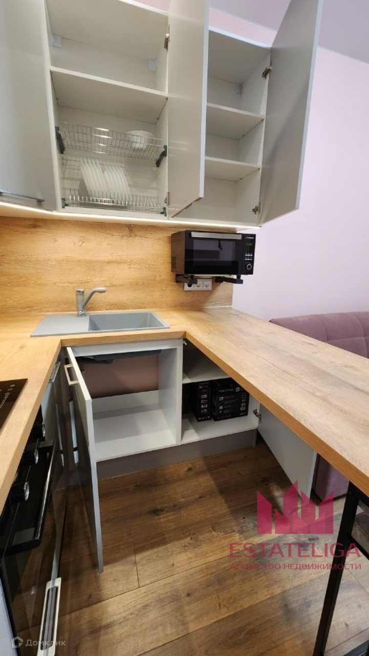 Уютная светлая студия, вся мебель и техника новые. Квартира оборудована всем необходимым для комфортного проживания: стиральная машина с сушкой, посудомойка, беспроводной пылесос, индукционная варочная панель, питьевой фильтр (отдельный кран), холодильник, духовка, телевизор (smart tv), диван раскладной (спальное место в разобранном состоянии — 160х200 см), люстра с дистанционным управлением, утюг, гладильная доска, электрический чайник, посуда, набор кастрюль, набор сковородок, Wi-Fi роутер, рулонная штора блэкаут.Также в подъезде 3 лифта: 2 грузовых, 1 пассажирский.