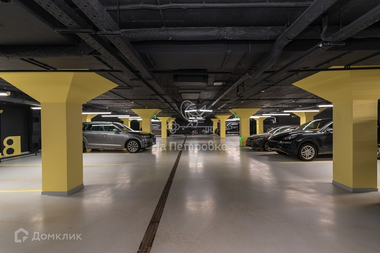 На подземном уровне находится 2-уровневая парковка. Во дворе за шлагбаумом расположена гостевая парковка.