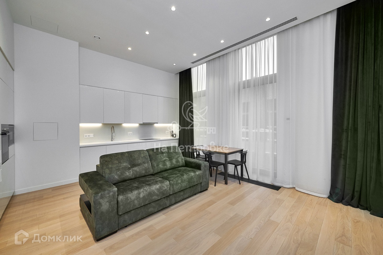 Общая площадь 70 кв.м (Просторная кухня-гостиная, мастер-спальня со своей гардеробной комнатой,  2 с/у, гардеробная комната в зоне прихожей),  5 этаж, окна во двор. Высокие потолки. Панорамные окна.