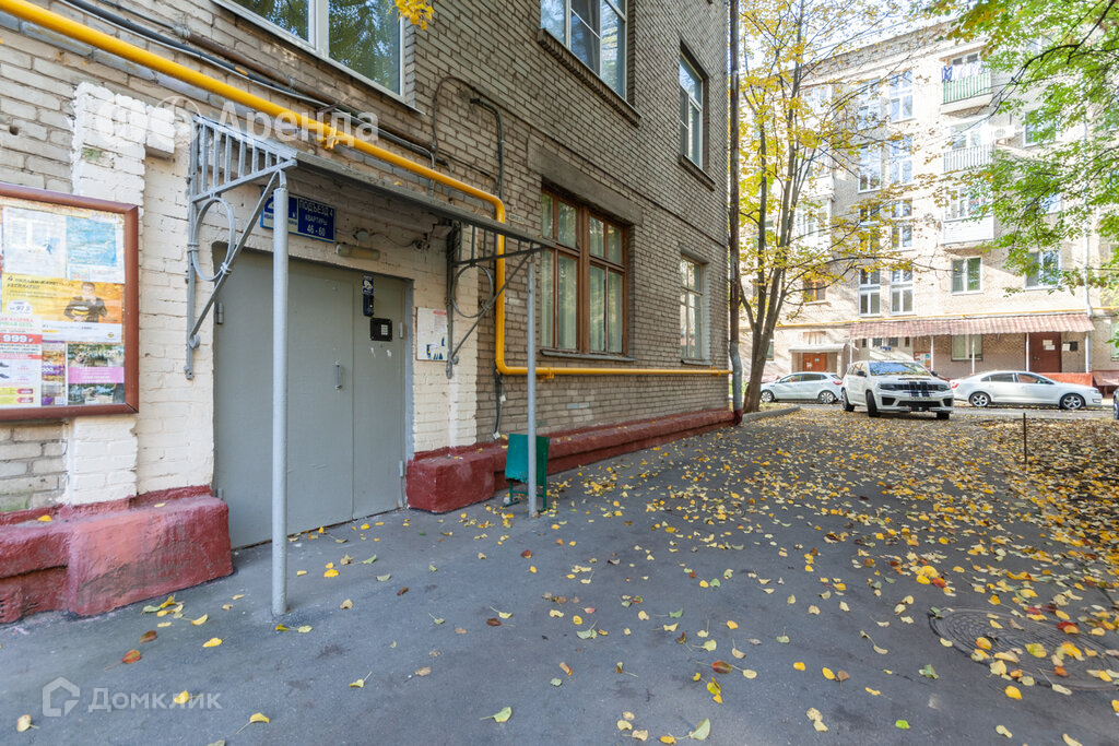 Кирпичный дом. Вход в подъезд расположен на уровне земли. Во дворе детская площадка, придомовая парковка. В пределах 7 минут ходьбы находится станция метро Профсоюзная.