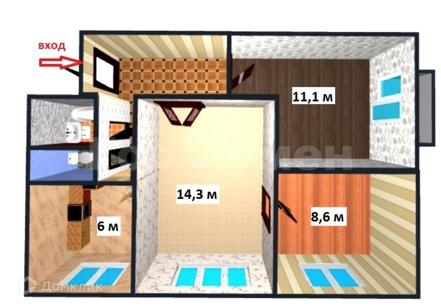 Количество комнат 3