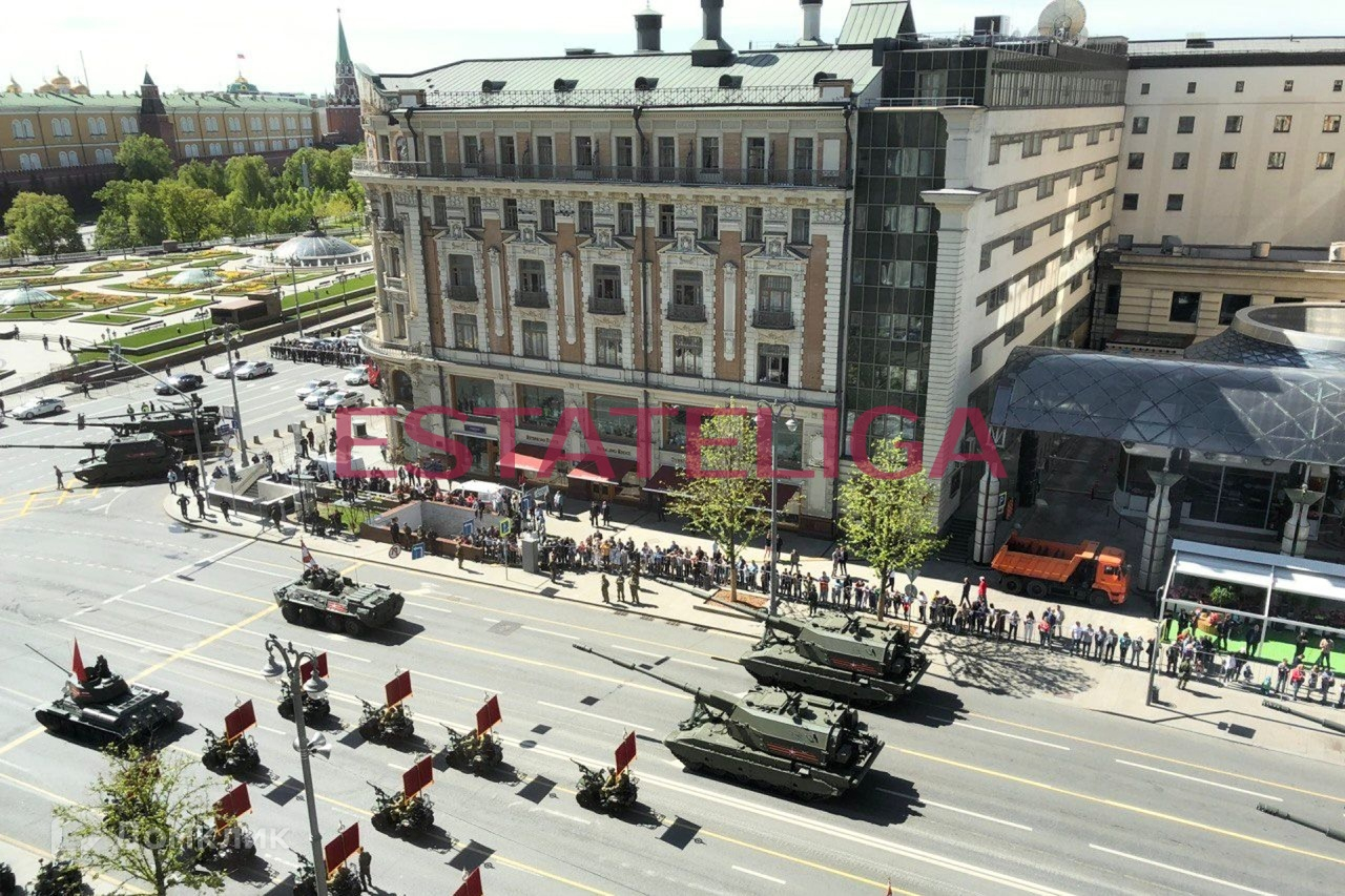 Четыре окна выходят на Тверскую улицу с видом на Кремль. Из окон видны парады и салюты. Самый ближайший дом от Кремля, до входа в Государственную Думу РФ - одна минута. В пешей доступности многие достопримечательности Москвы - Красная площадь, Большой театр, ЦУМ, и многое другое.