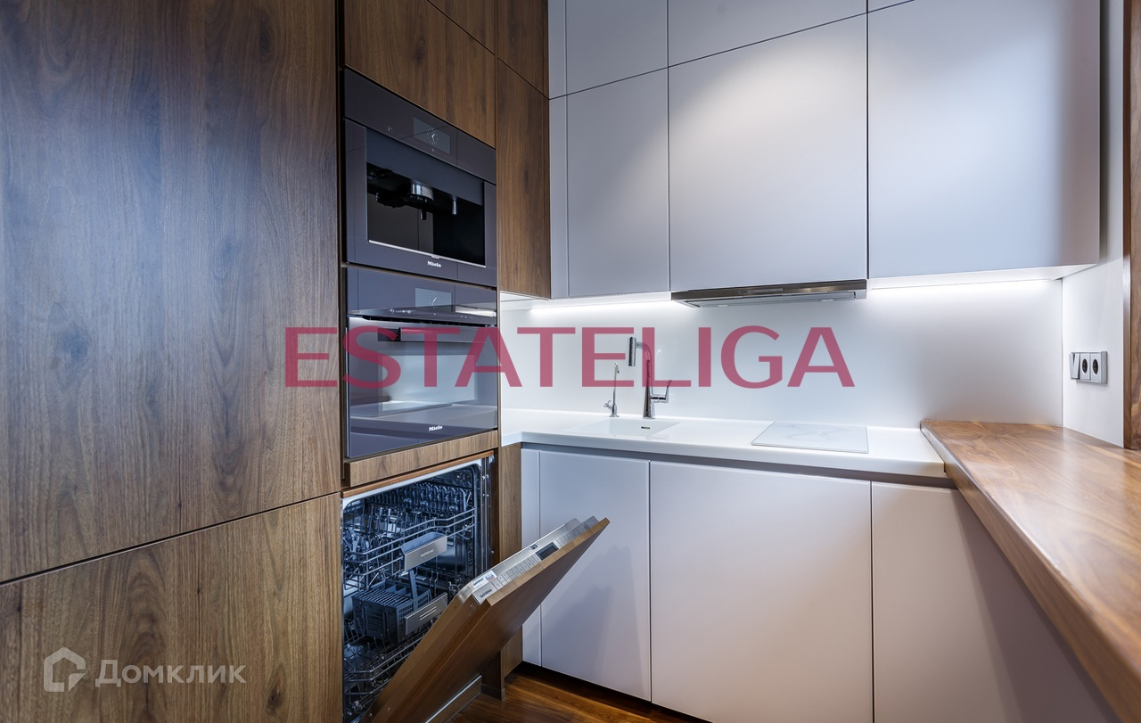 Квартира оборудована премиальной бытовой техникой (Miele, Liebherr, Bosch): посудомоечная машина, холодильник, варочная панель, духовой шкаф, вытяжка. Установлена канальная система кондиционирования и приточная вентиляция.