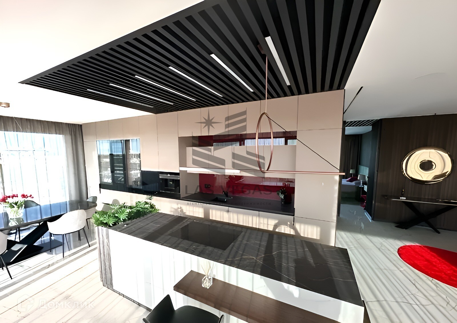 В квартире два стильных санузла с использованием высококачественных материалов и современной сантехники. Просторная гостиная совмещена с кухней-столовой, что создает ощущение открытого пространства и легкости.