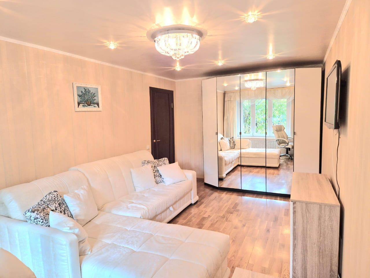 Сдается 2 комнатная квартира с двумя изолированными комнатами после капитального ремонта, впервые. Можно с детьми от 10 лет, школа около дома. Квартира полностью оснащена мебелью, телевизором, диваны с ортопедическим основанием, стирально-сушильной машиной, посудомоечной машиной, духовым шкафом, варочной панелью, вытяжкой, кухонным гарнитуром, двухкамерным холодильником. В квартире есть вай-фай и спутниковое телевидиние. Во дворе много парковочных мест без шлагбаума.